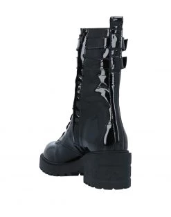 leather, varnished effect, brand logo, contrasting applications, solid colour with appliqués, laces, round toeline, square heel, leather lining, lug sole, contains non-textile parts of animal origin