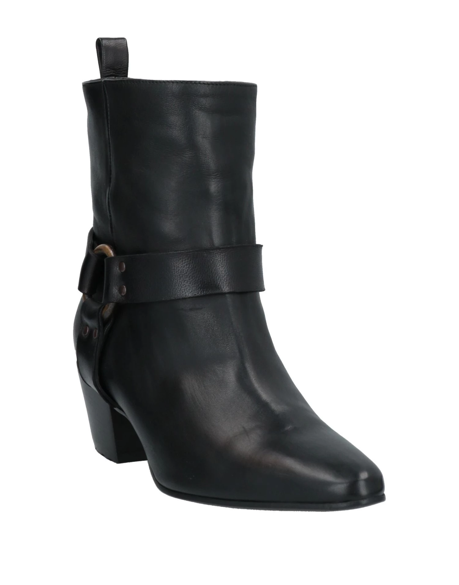 leather, metal applications, solid colour with appliqués, leather backing, narrow toeline, cuban heel, leather sole, contains non-textile parts of animal origin