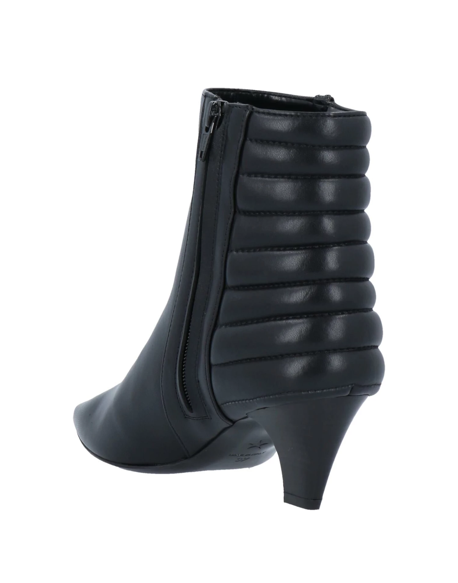 nappa leather, darts, solid color, zipper closure, narrow toeline, cone heel, wooden heel, leather lining, leather/rubber sole, contains non-textile parts of animal origin