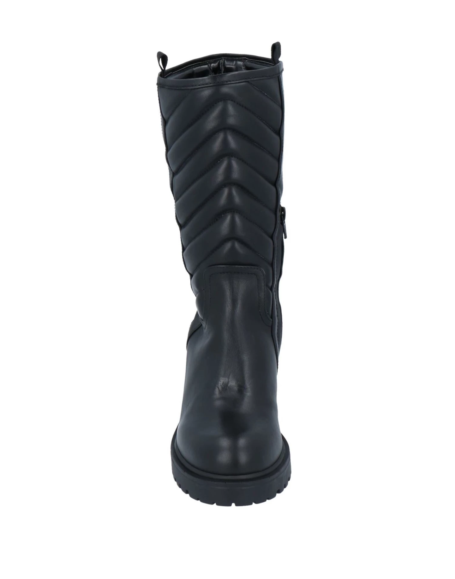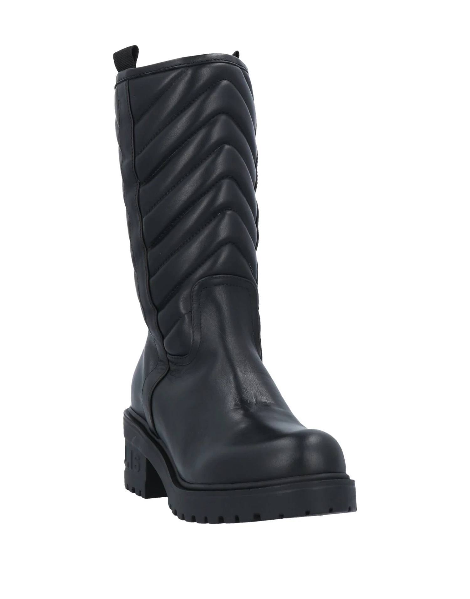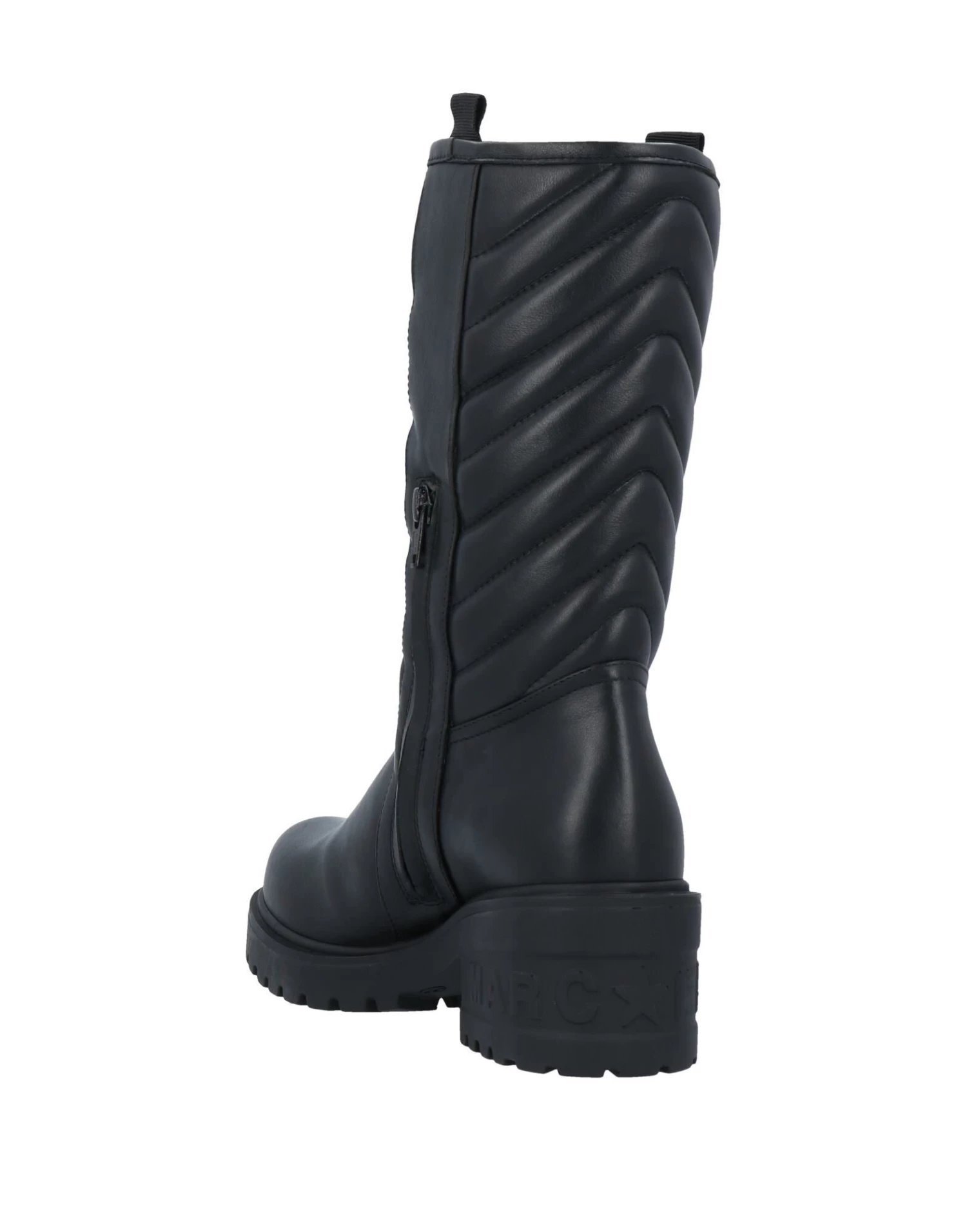 nappa leather, brand logo, solid color, zipper closure, round toeline, square heel, leather lining, rubber cleated sole, contains non-textile parts of animal origin
