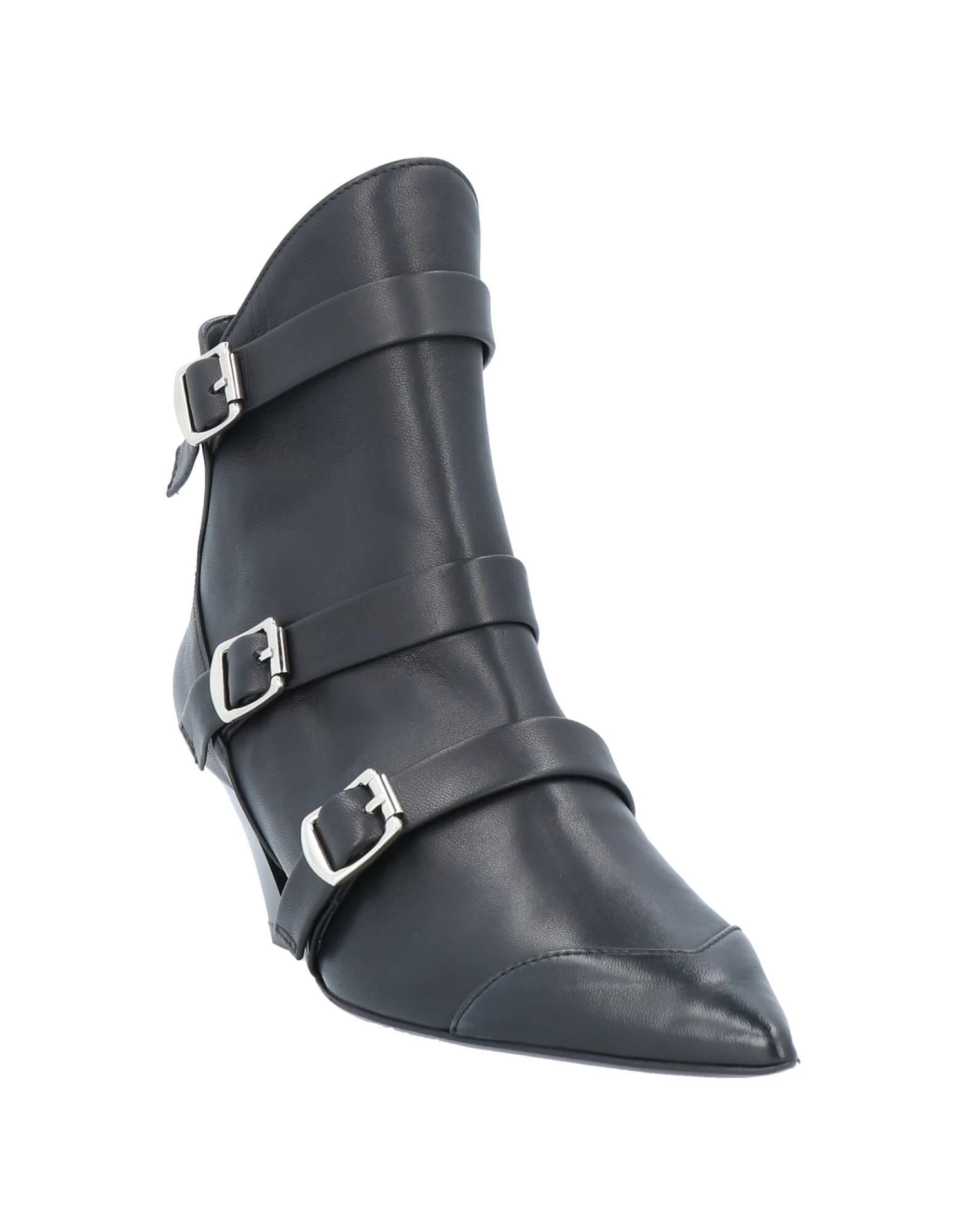 leather, nappa leather, contrasting applications, solid colour with appliqués, zipper closure, narrow toeline, geometric heel, covered heel, leather lining, rubber sole, contains non-textile parts of animal origin
