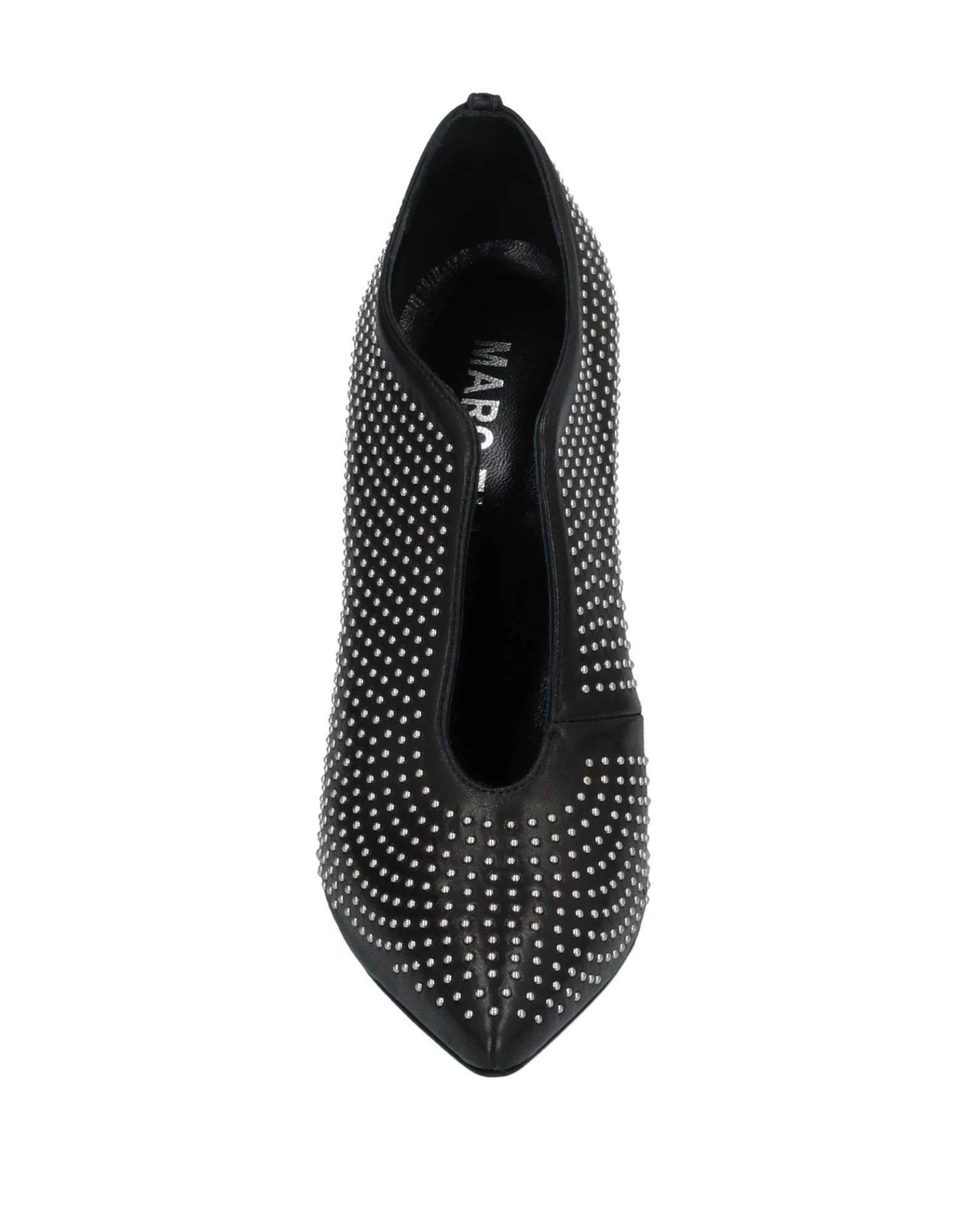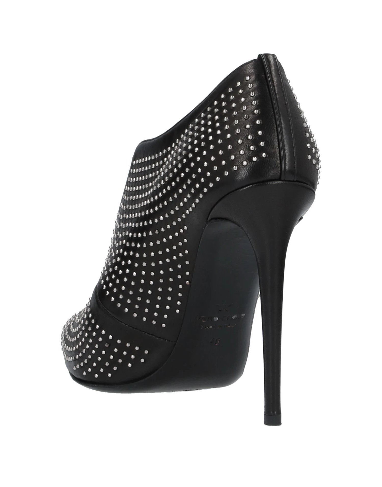 metal applications, solid color, narrow toeline, stiletto heel, leather lining, leather sole, contains non-textile parts of animal origin, nappa leather