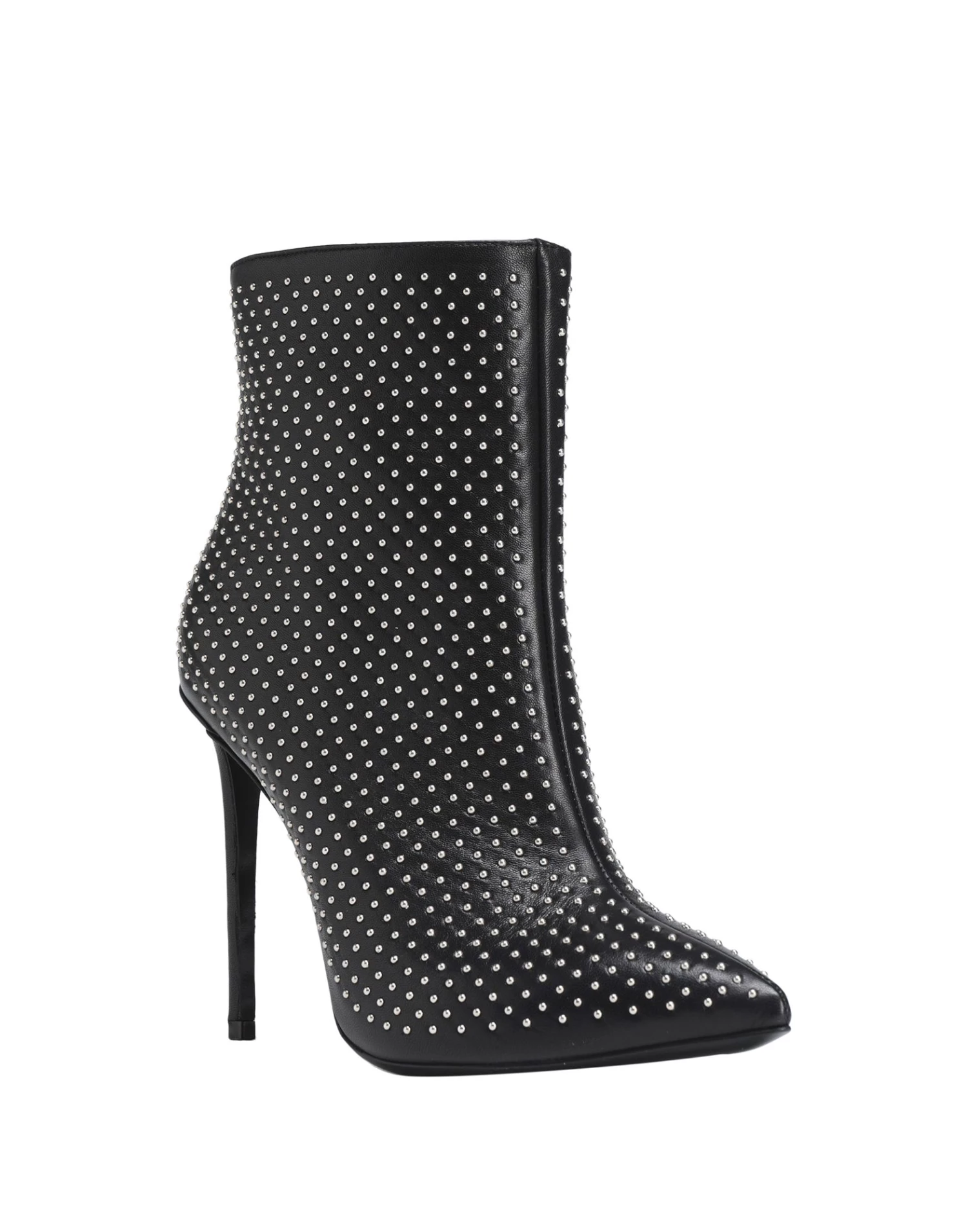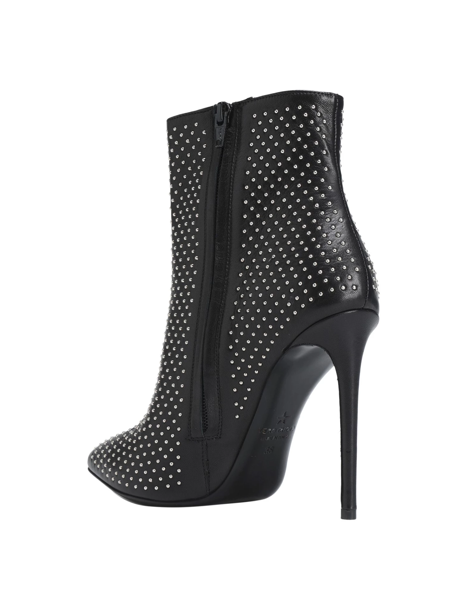metal applications, solid color, zipper closure, narrow toeline, spike heel, leather lining, leather/rubber sole, contains non-textile parts of animal origin
