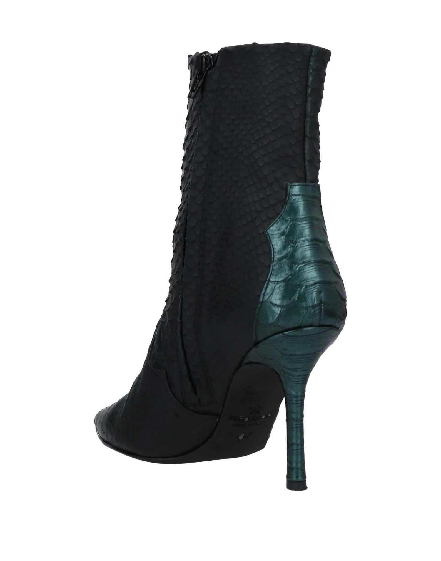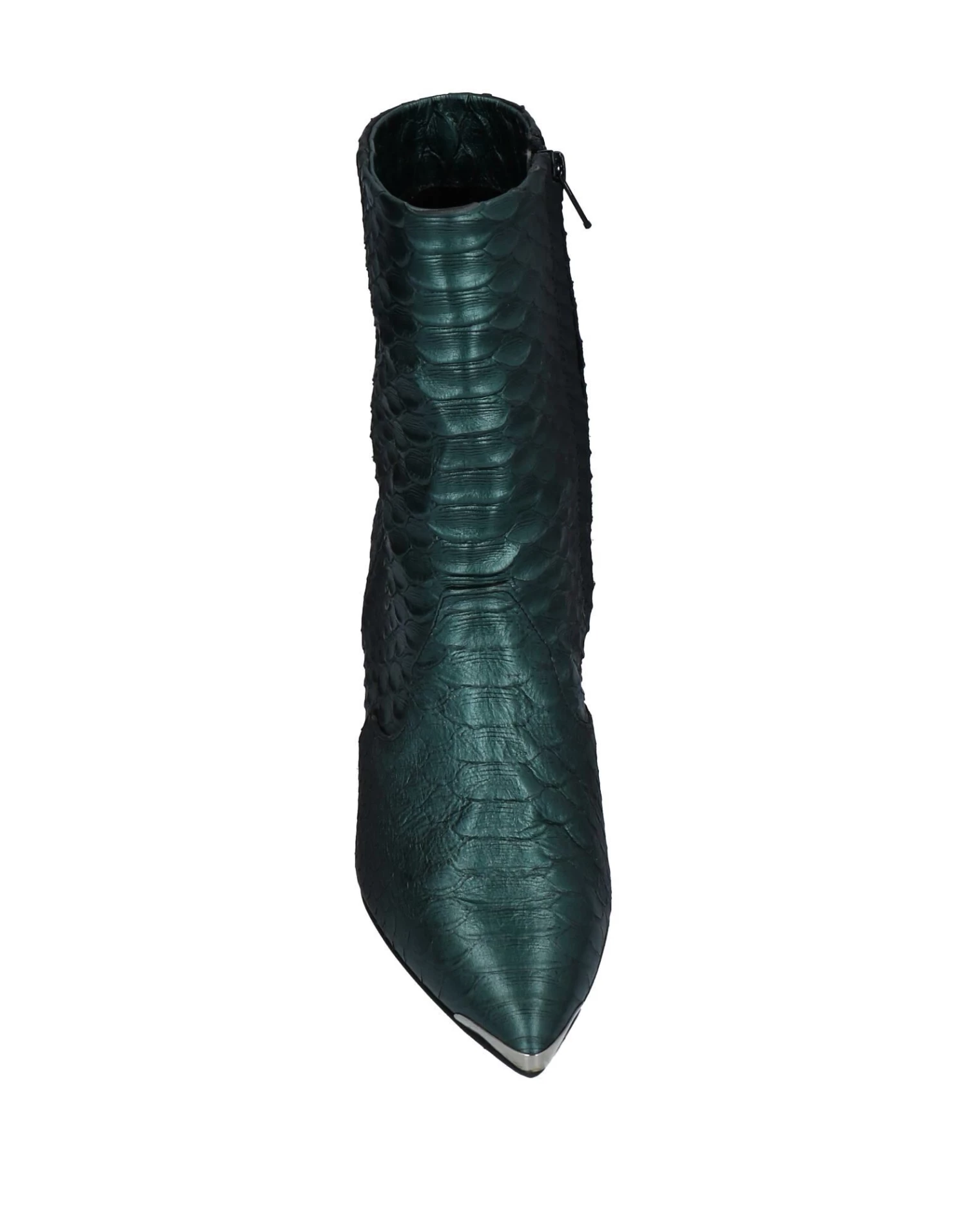 snakeskin print, laminated effect, metal applications, solid color, zipper closure, narrow toeline, stiletto heel, covered heel, leather lining, leather sole, contains non-textile parts of animal origin