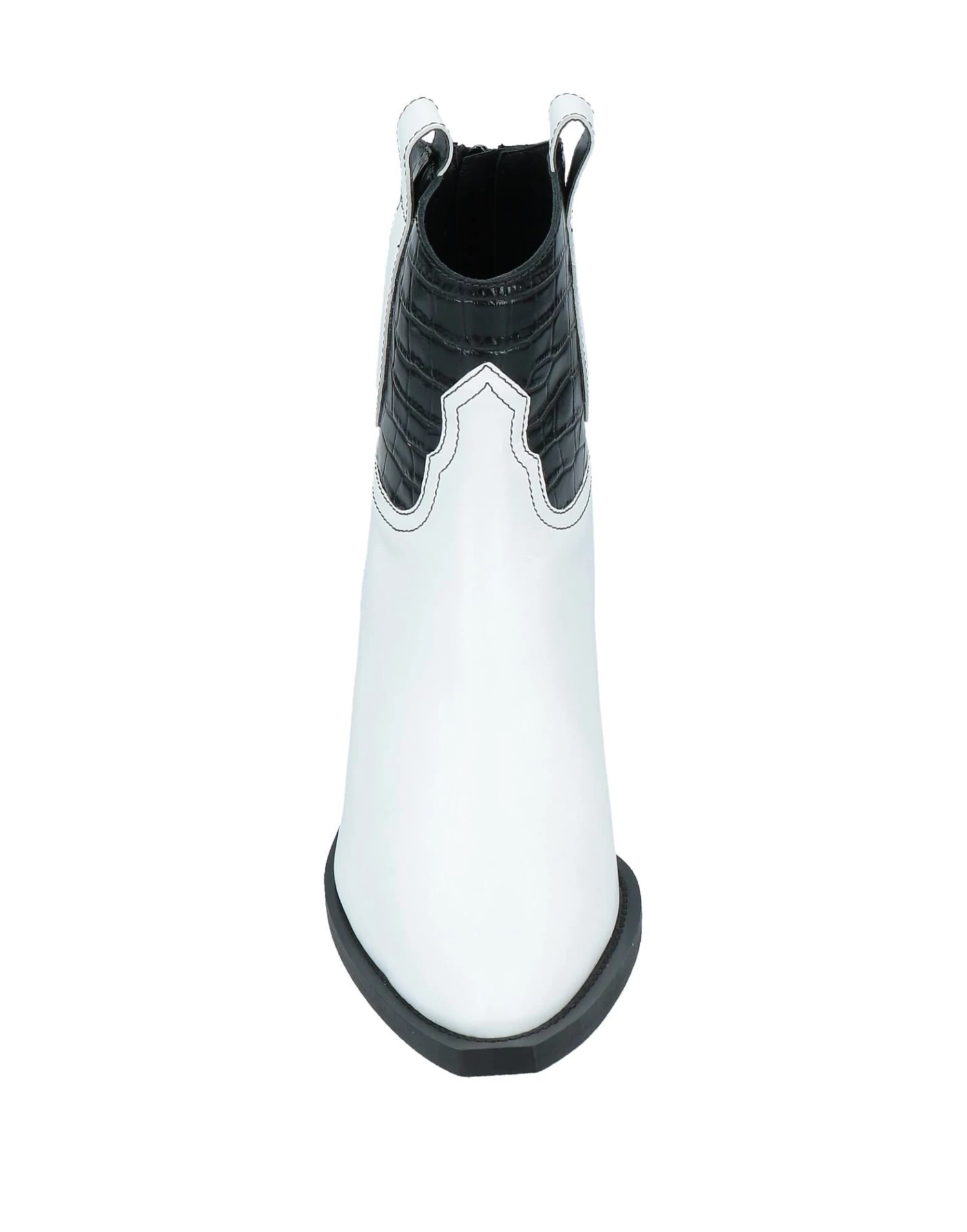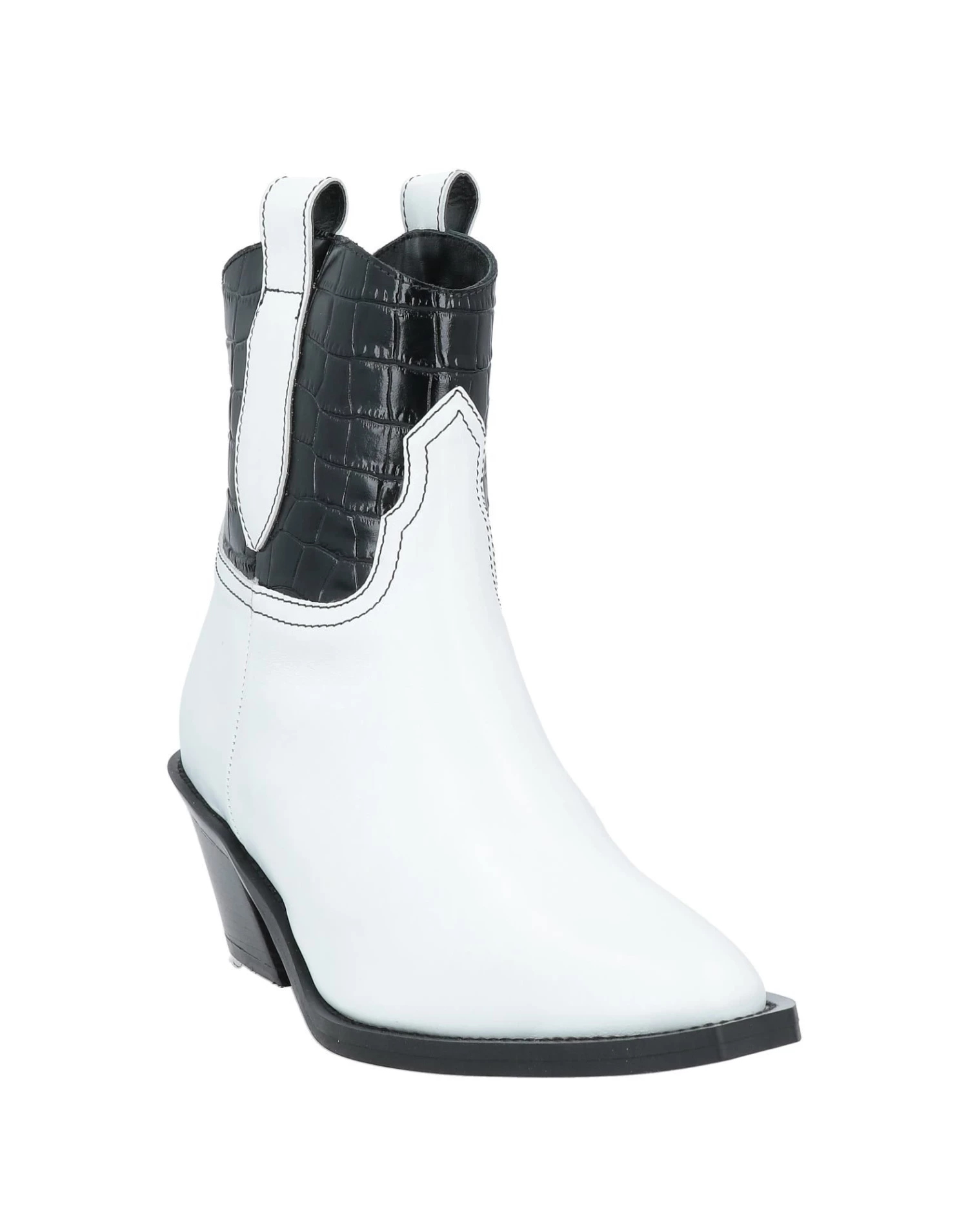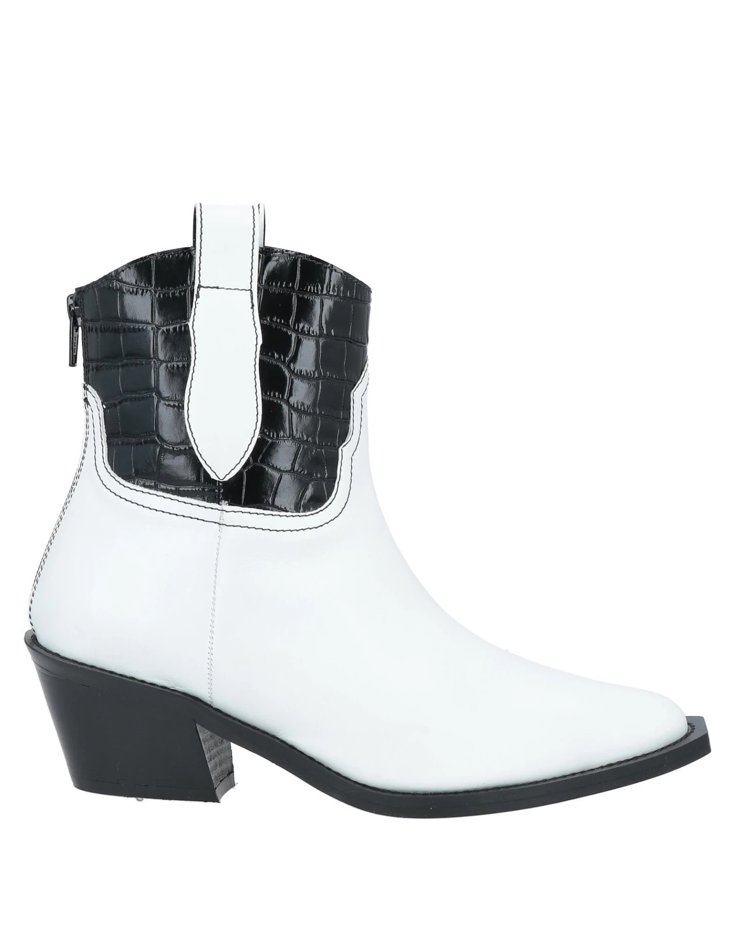 leather, crocodile print, no appliqués, two-tone, leather lining, zipper closure, square toeline, cuban heel, wooden heel, leather sole, contains non-textile parts of animal origin