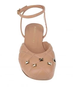 leather, contrasting applications, solid colour with appliqués, leather lining, buckling ankle strap closure, round toeline, flat, rubber sole, contains non-textile parts of animal origin