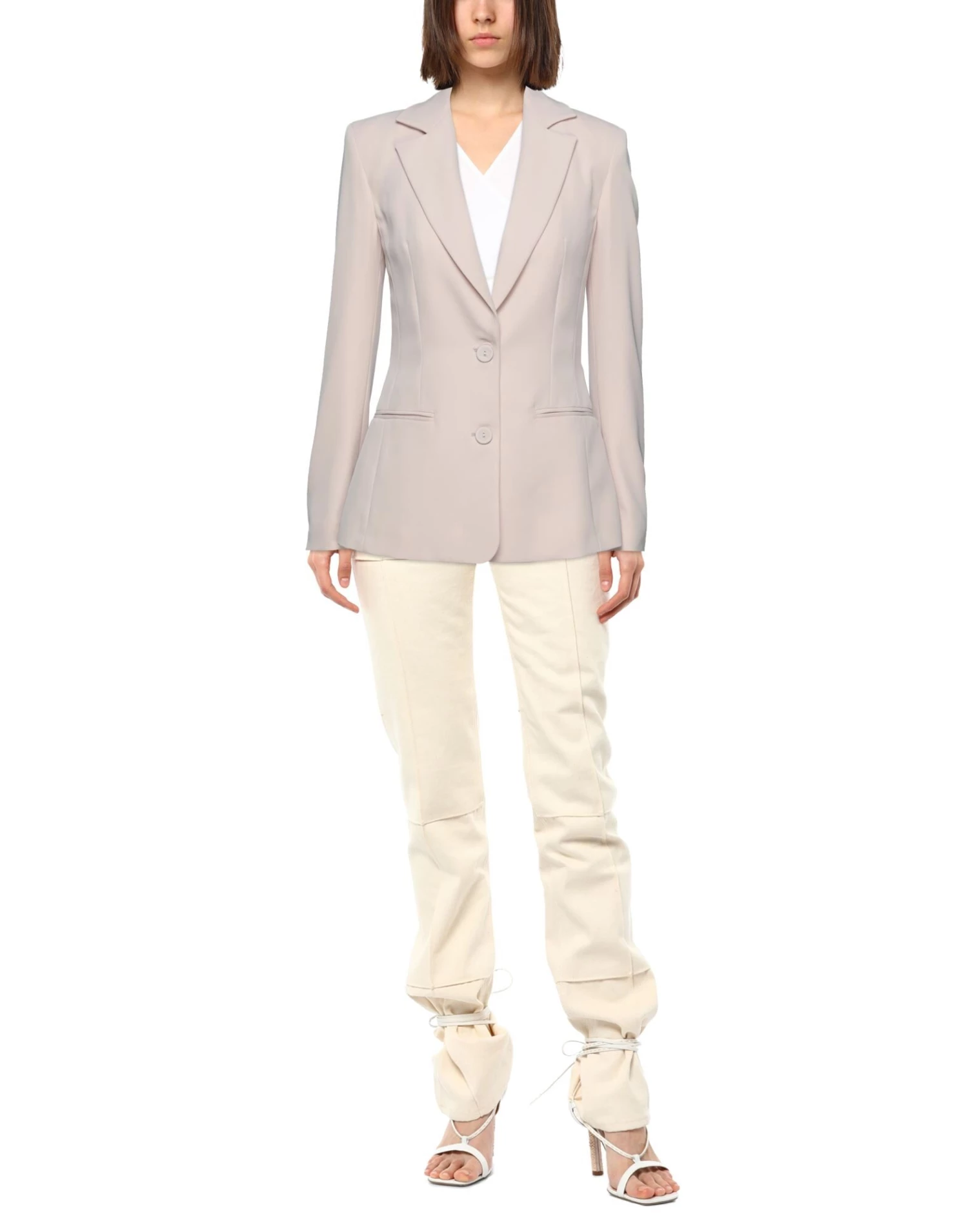 crepe, no appliqués, solid color, lapel collar, single-breasted , long sleeves, fully lined, button closing, multipockets, stretch