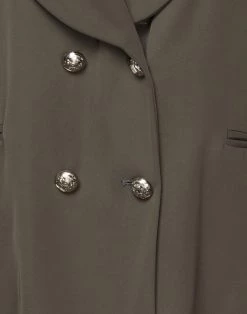 crepe, no appliquΓ©s, solid color, lapel collar, double-breasted, long sleeves, fully lined, button closing, multipockets, pleated pocket, stretch