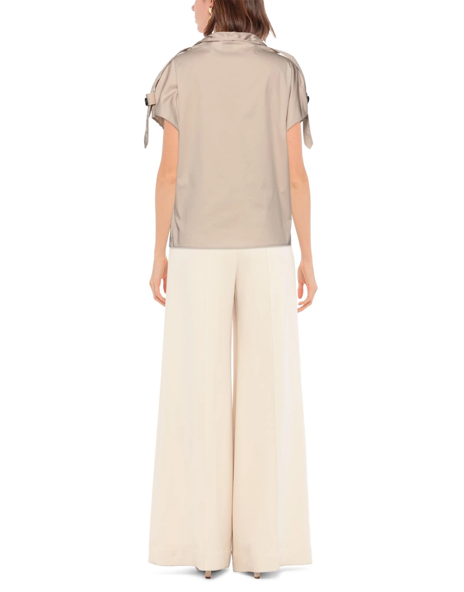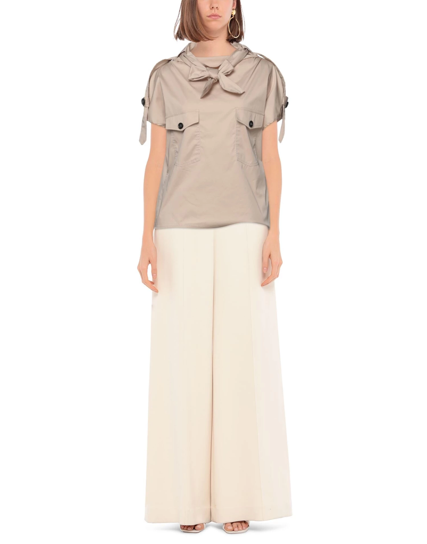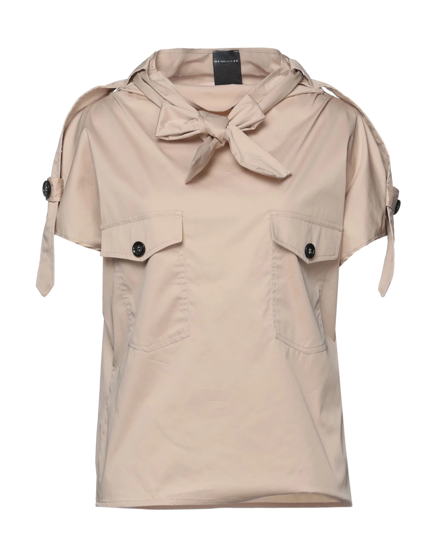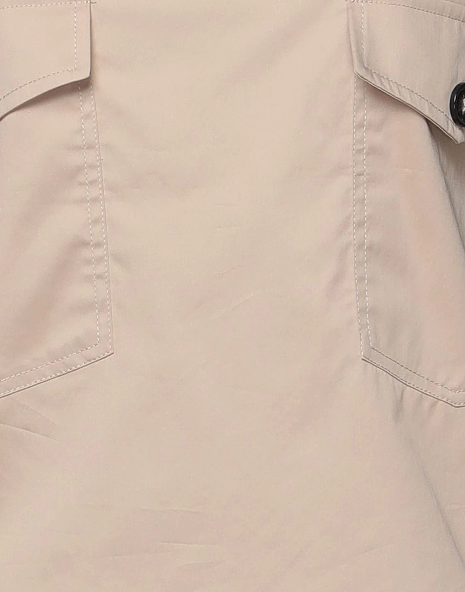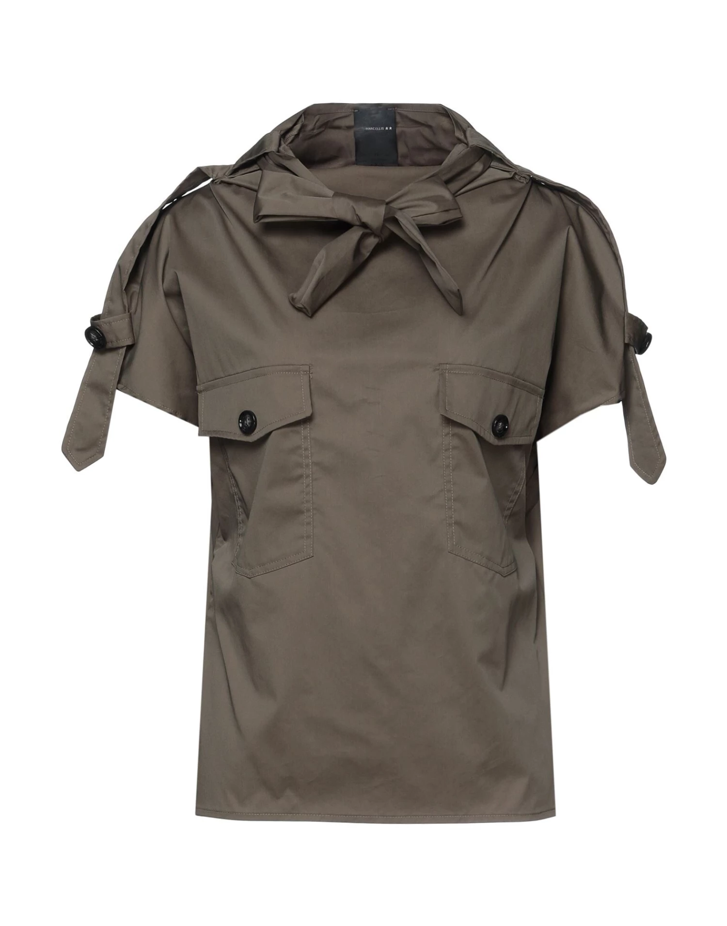 plain weave, flashes, solid color, bow collar, short sleeves, two breast pockets, stretch