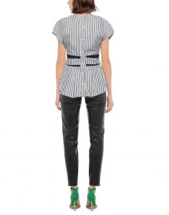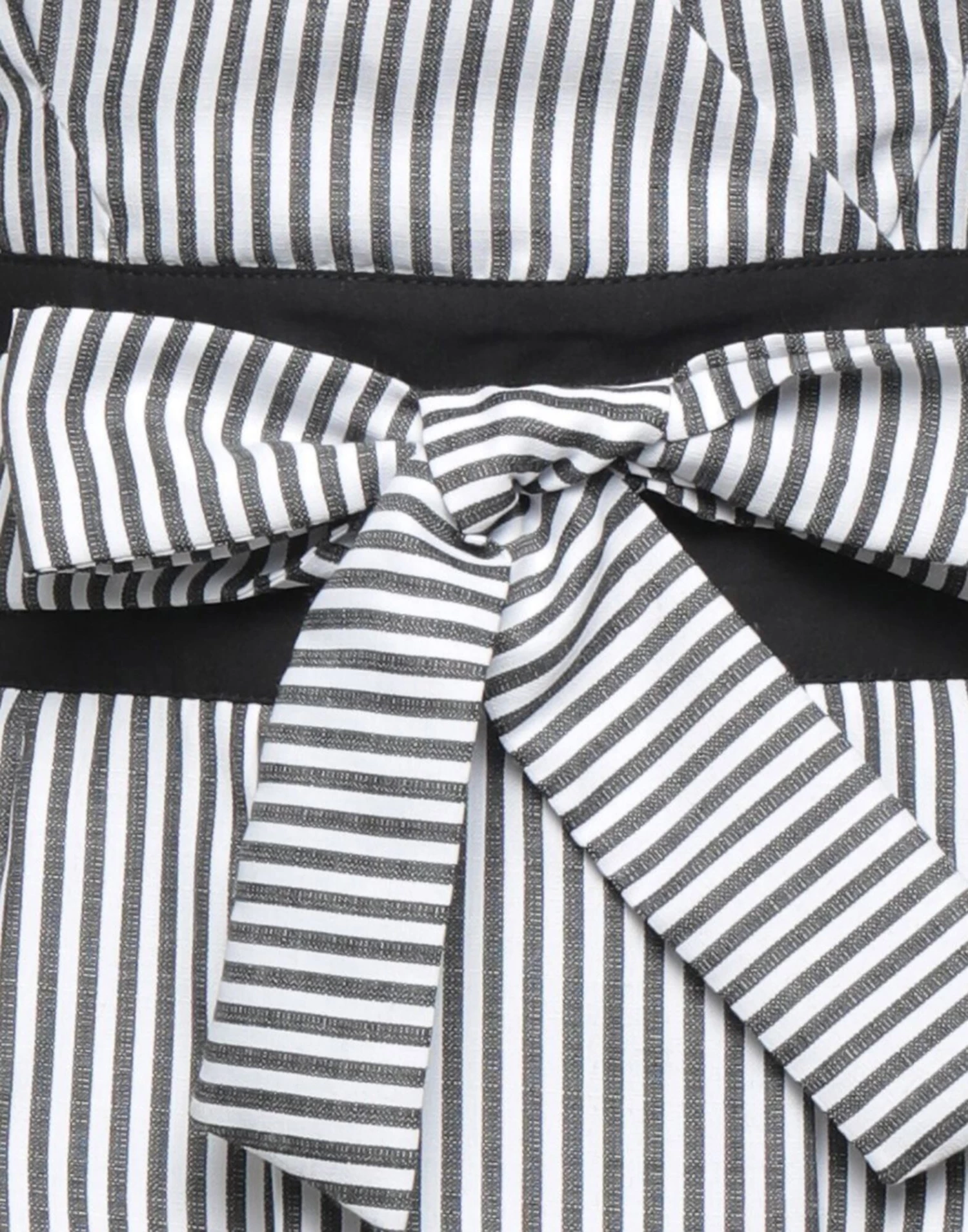 plain weave, sash, stripes, v-neck, short sleeves, button closing, no pockets