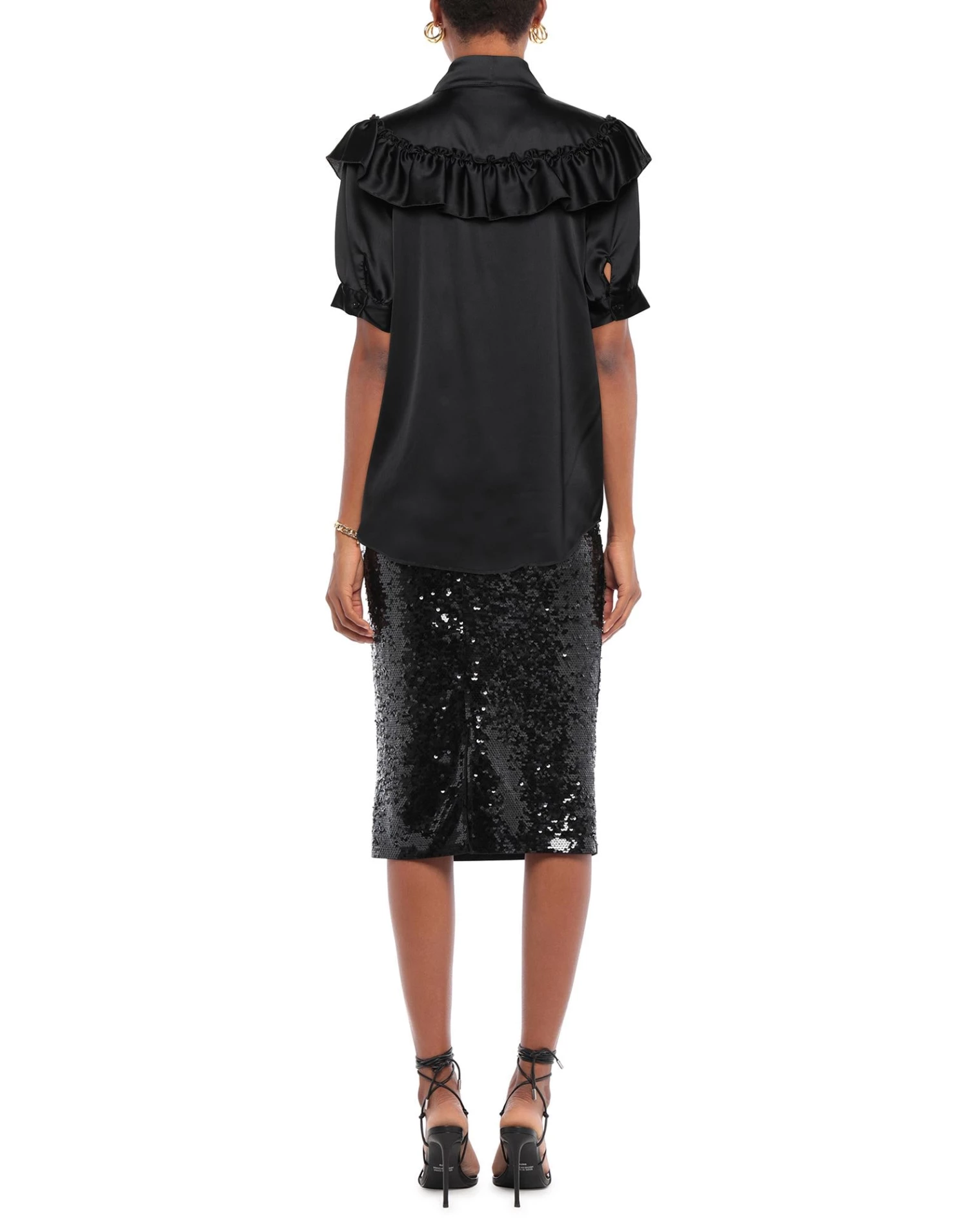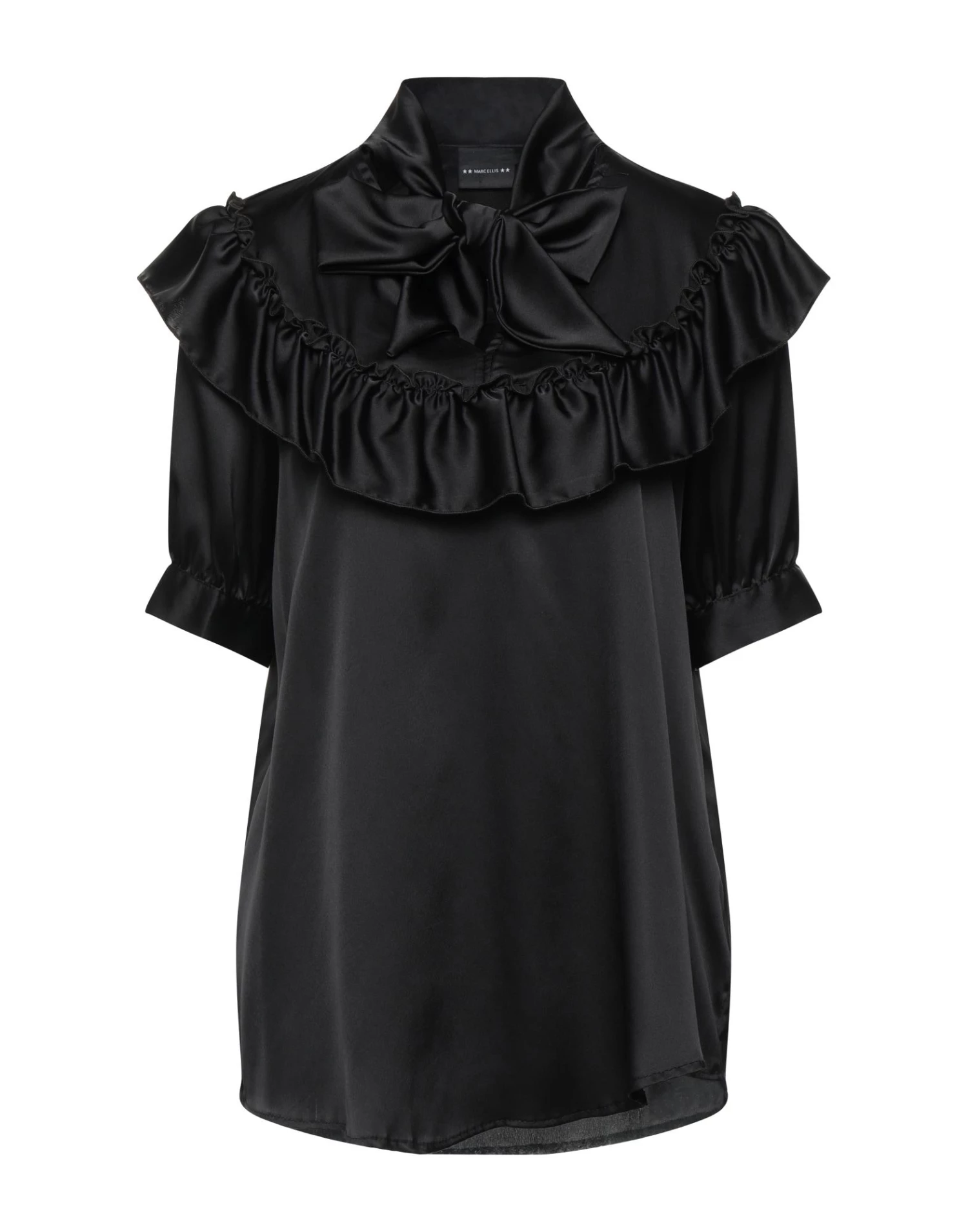 satin, ruffles, solid color, bow collar, short sleeves