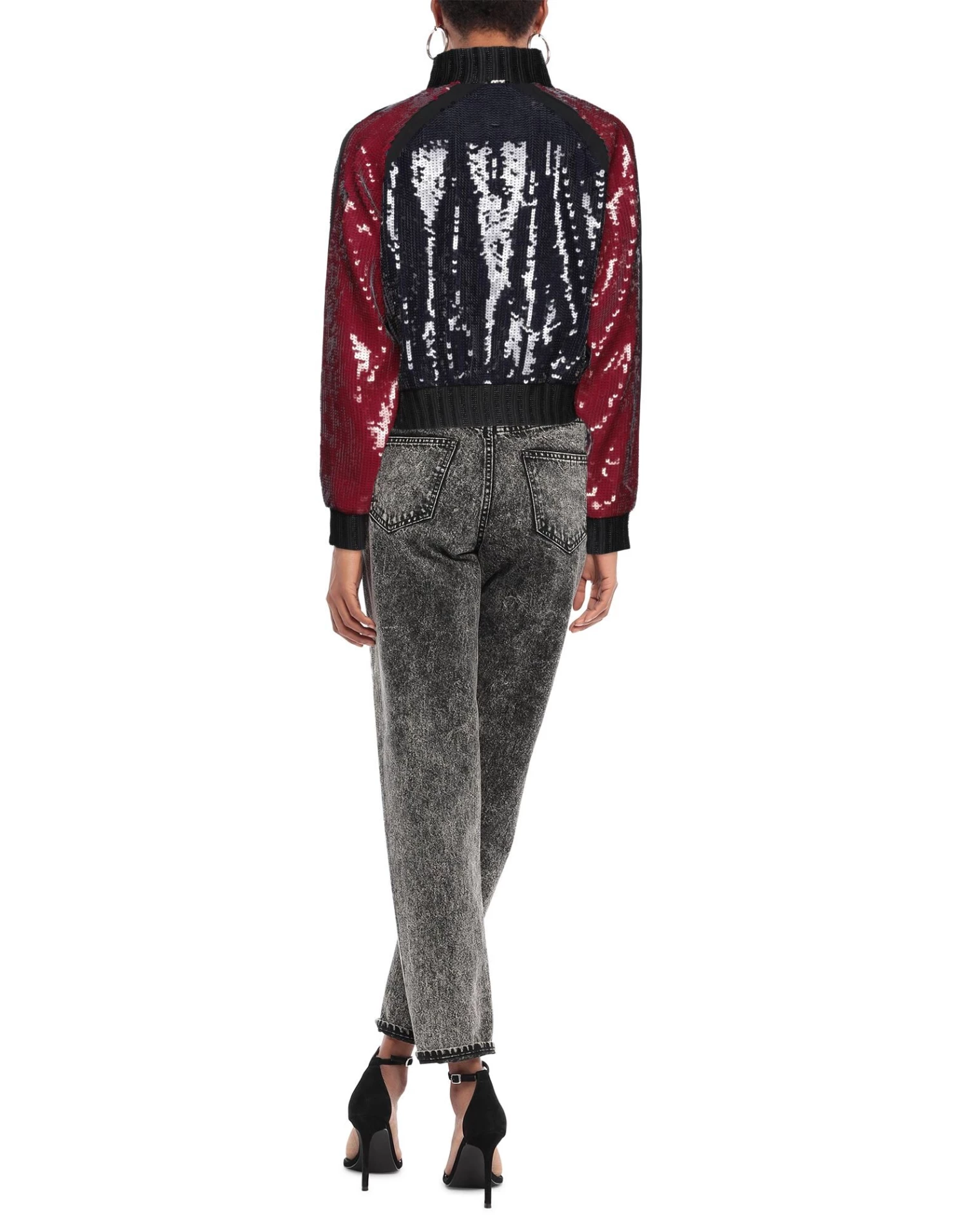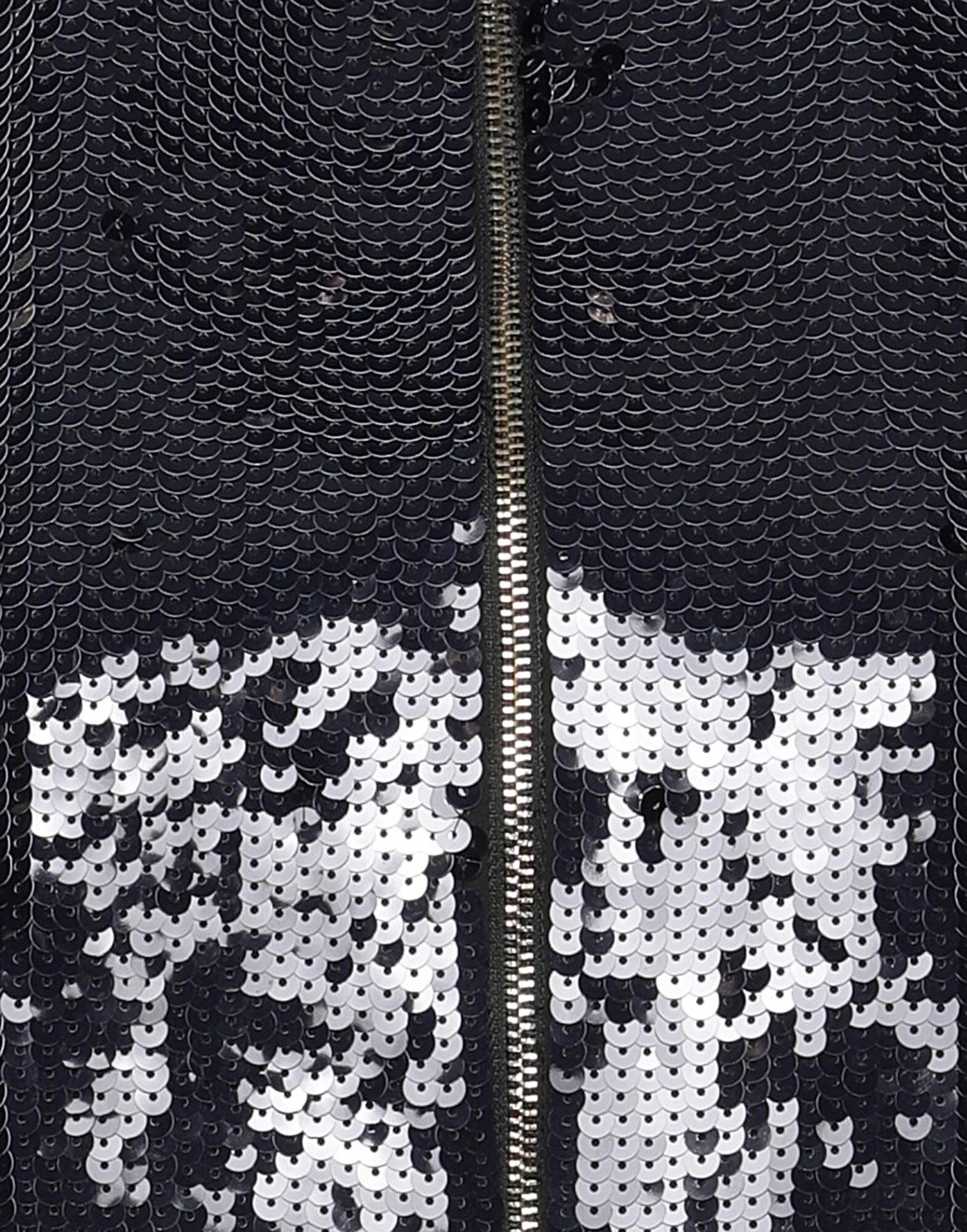 plain weave, beads, sequins, multicolor pattern, turtleneck, single-breasted , long sleeves, fully lined, zipper closure, no pockets