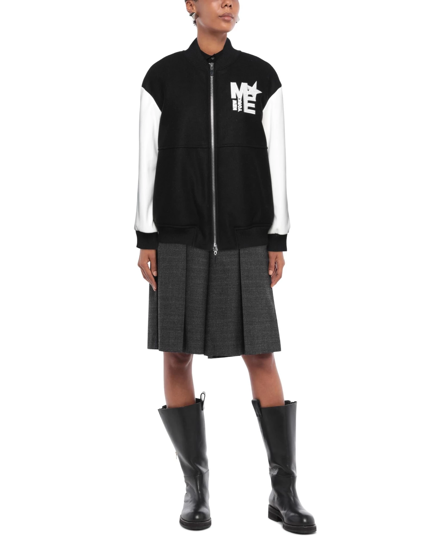 coated fabric, baize, brand logo, embroidered detailing, two-tone, round collar, single-breasted , long sleeves, fully lined, zipper closure, multipockets