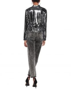 techno fabric, laminated effect, no appliquΓ©s, solid color, round collar, single-breasted , long sleeves, cuffs with elastic, fully lined, zipper closure, with elastic bottom, no pockets, stretch