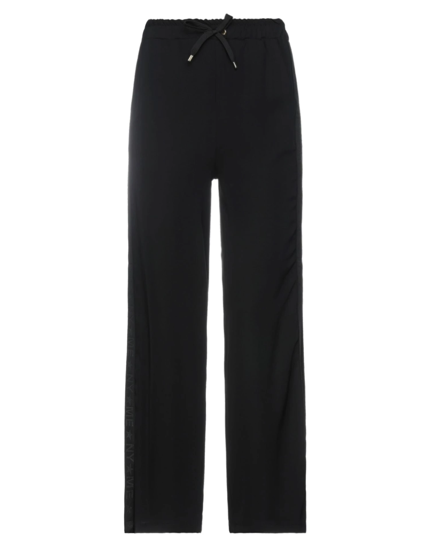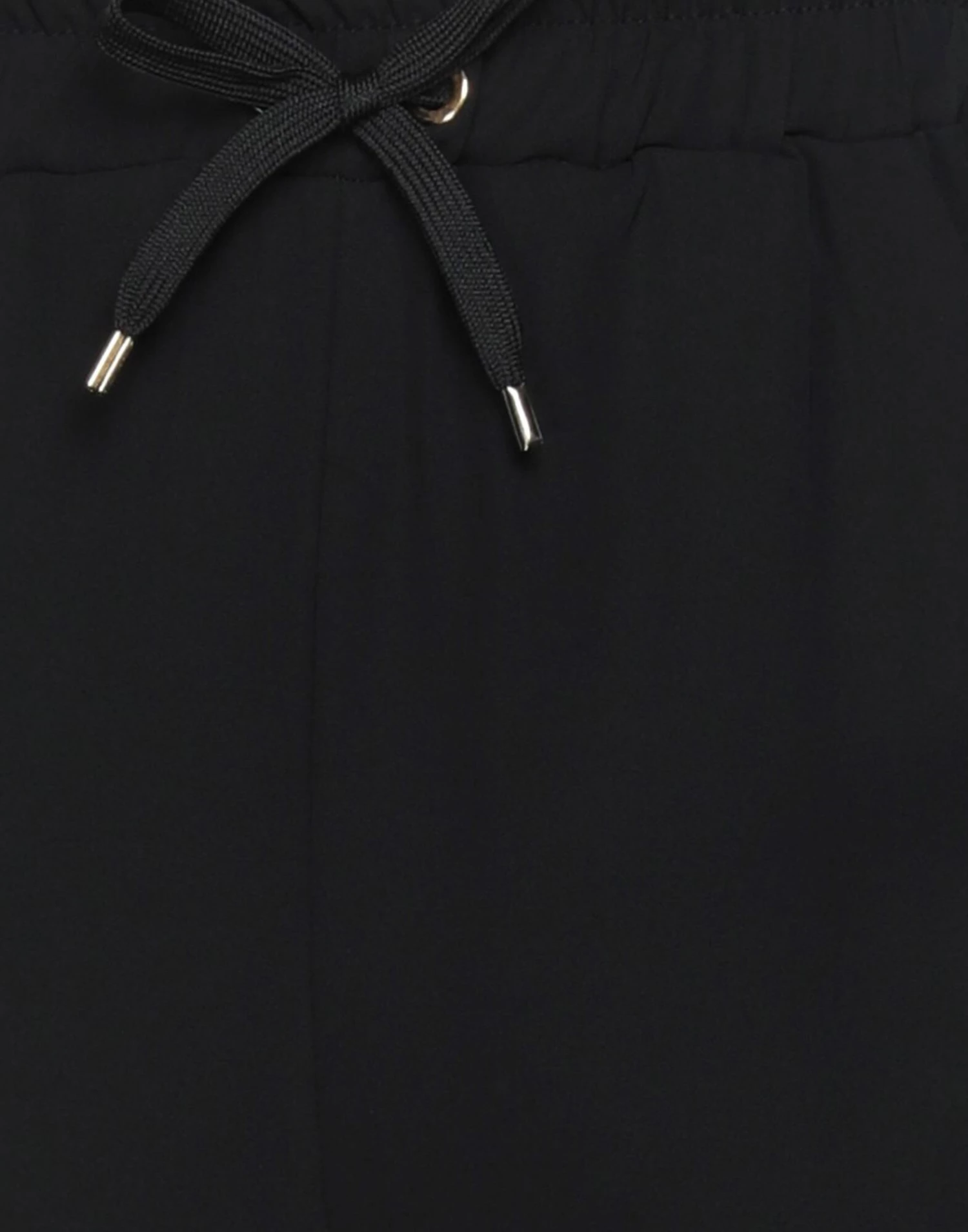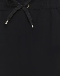 crepe, pleated, solid colour with appliqués, side seam stripes, logo, high waisted, comfort fit, flare & wide-leg, drawstring closure, multipockets, stretch