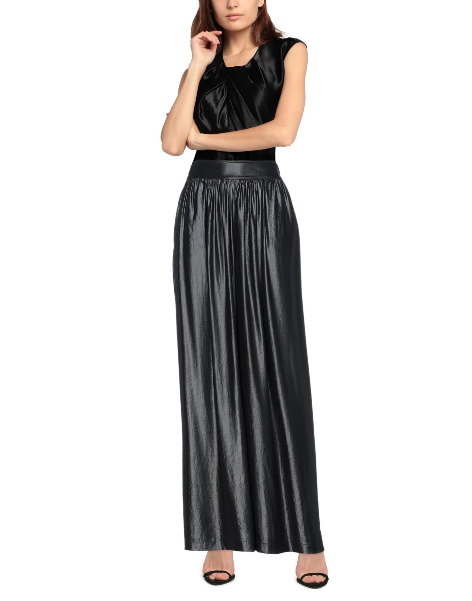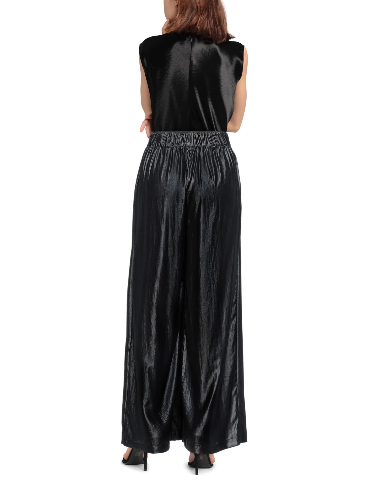 voile, no appliqués, solid color, high waisted, straight leg, regular fit, no pockets, coated effect