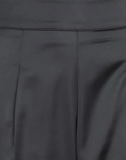 satin, solid color, darts, high waisted, regular fit, tapered leg, zipper closure, multipockets, stretch