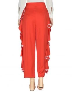 satin, crepe, ruffles, two-tone, high waisted, straight leg, regular fit, multipockets, 1 button, zipper closure, chinos