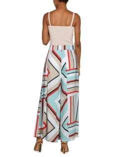 satin, darts, geometric design, high waisted, wide leg, comfort fit, zipper closure, multipockets, partially lined interior
