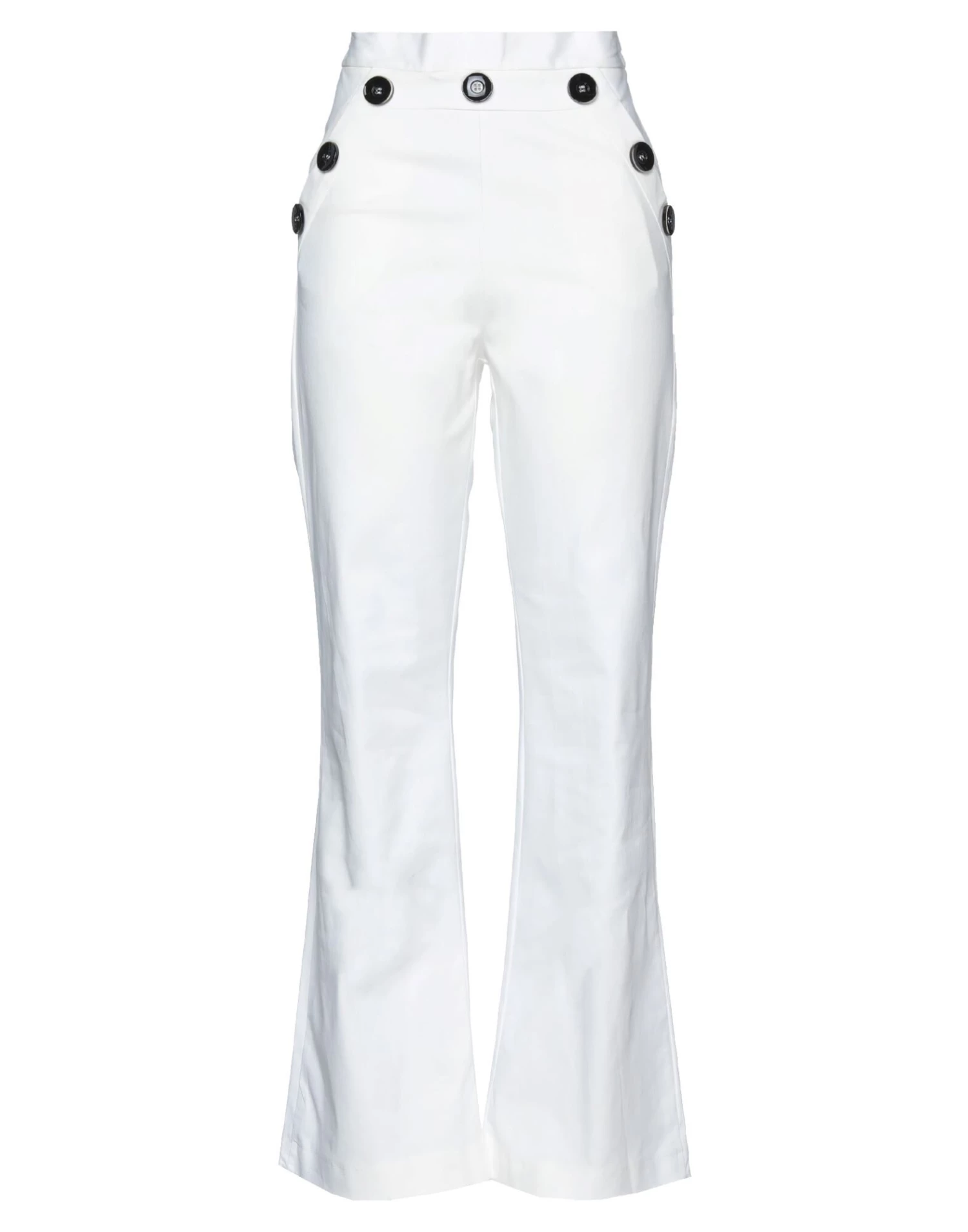 twill, no appliqués, solid color, high waisted, flared cut, regular fit, button closing, multipockets, stretch
