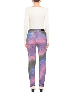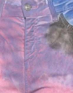 denim, side seam stripes, brand logo, multicolor pattern, colored wash, high waisted, belt loops, tapered leg, slim-leg pants, zipper closure, 1 button, multipockets, stretch