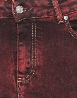 denim, faded, no appliquΓ©s, two-tone, colored wash, high waisted, belt loops, straight leg, slim-leg pants, 1 button, zipper closure, five pockets, stretch