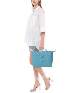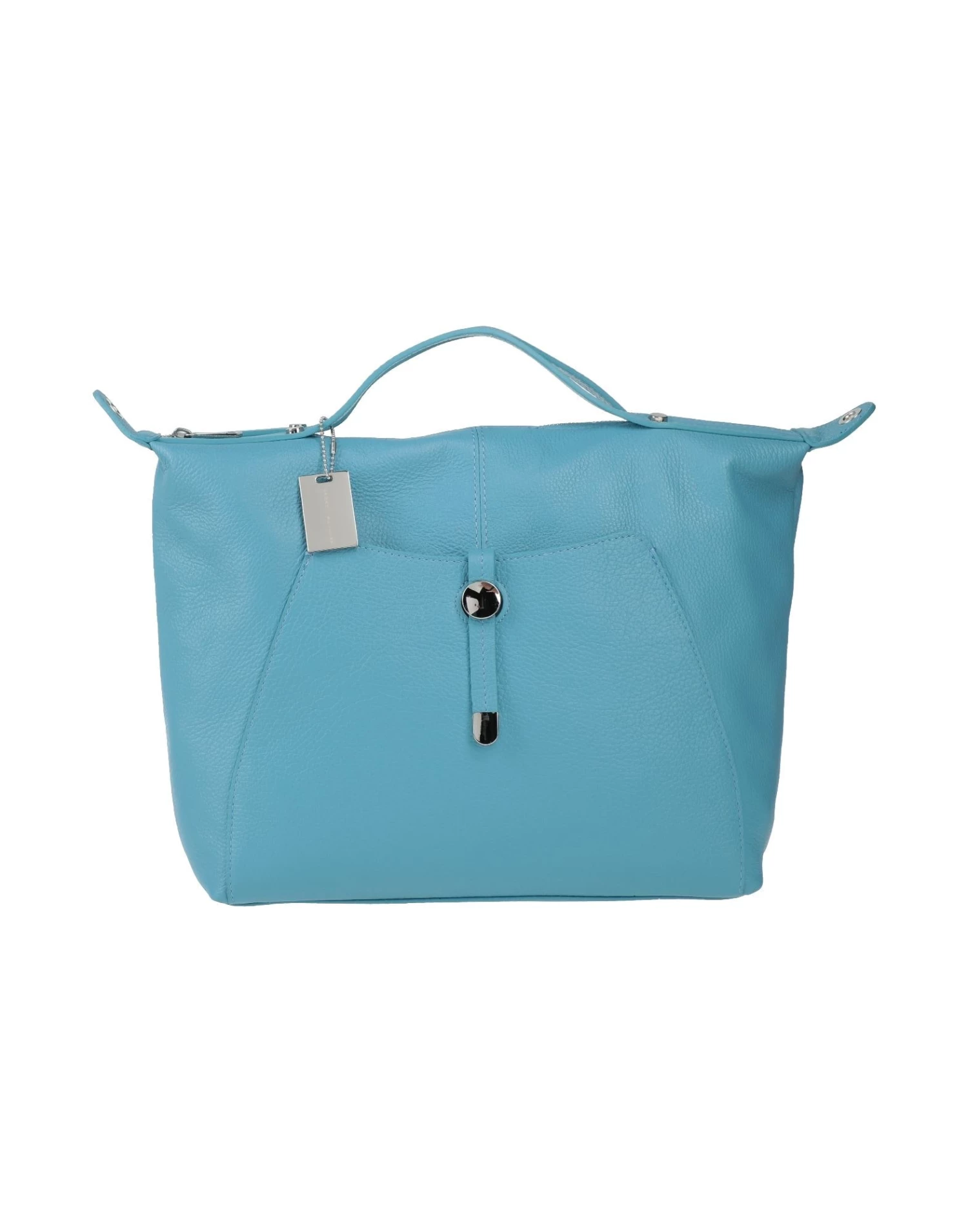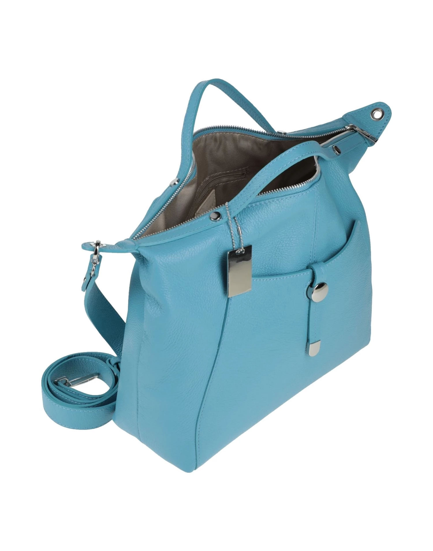 large, textured leather, detachable application, solid color, fully lined, zipper closure, internal pockets, external pockets, bottom with studs, daytime, contains non-textile parts of animal origin, detachable shoulder strap