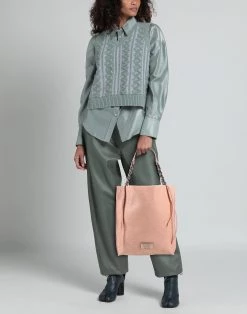 large, leather, brand logo, solid color, fully lined, magnetic fastening, double handle, internal pockets, detachable shoulder strap, daytime, contains non-textile parts of animal origin