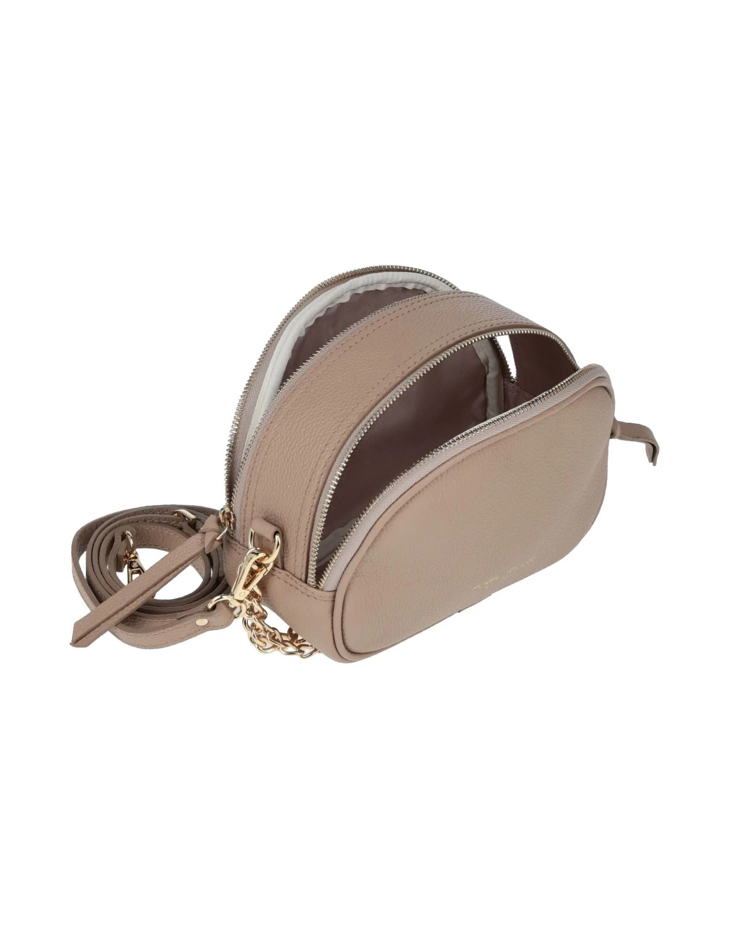 medium, leather, textured leather, brand logo, solid color, fully lined, zipper closure, double handle, detachable shoulder strap, daytime, contains non-textile parts of animal origin