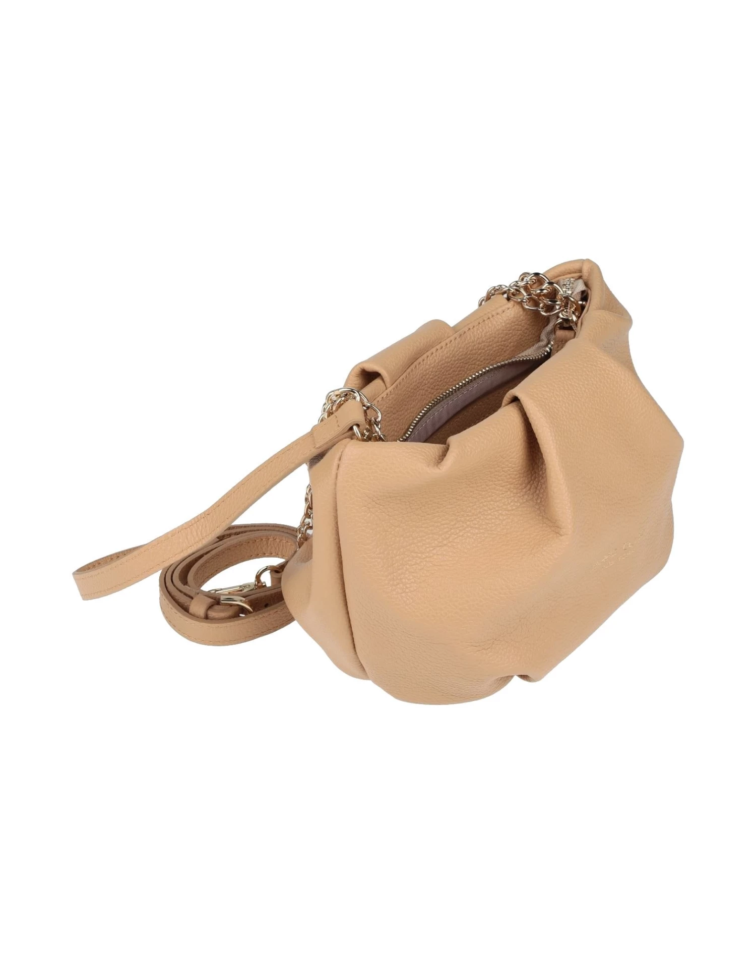 medium, leather, textured leather, brand logo, solid color, fully lined, zipper closure, internal zip pocket, double handle, detachable shoulder strap, contains non-textile parts of animal origin, daytime