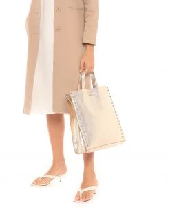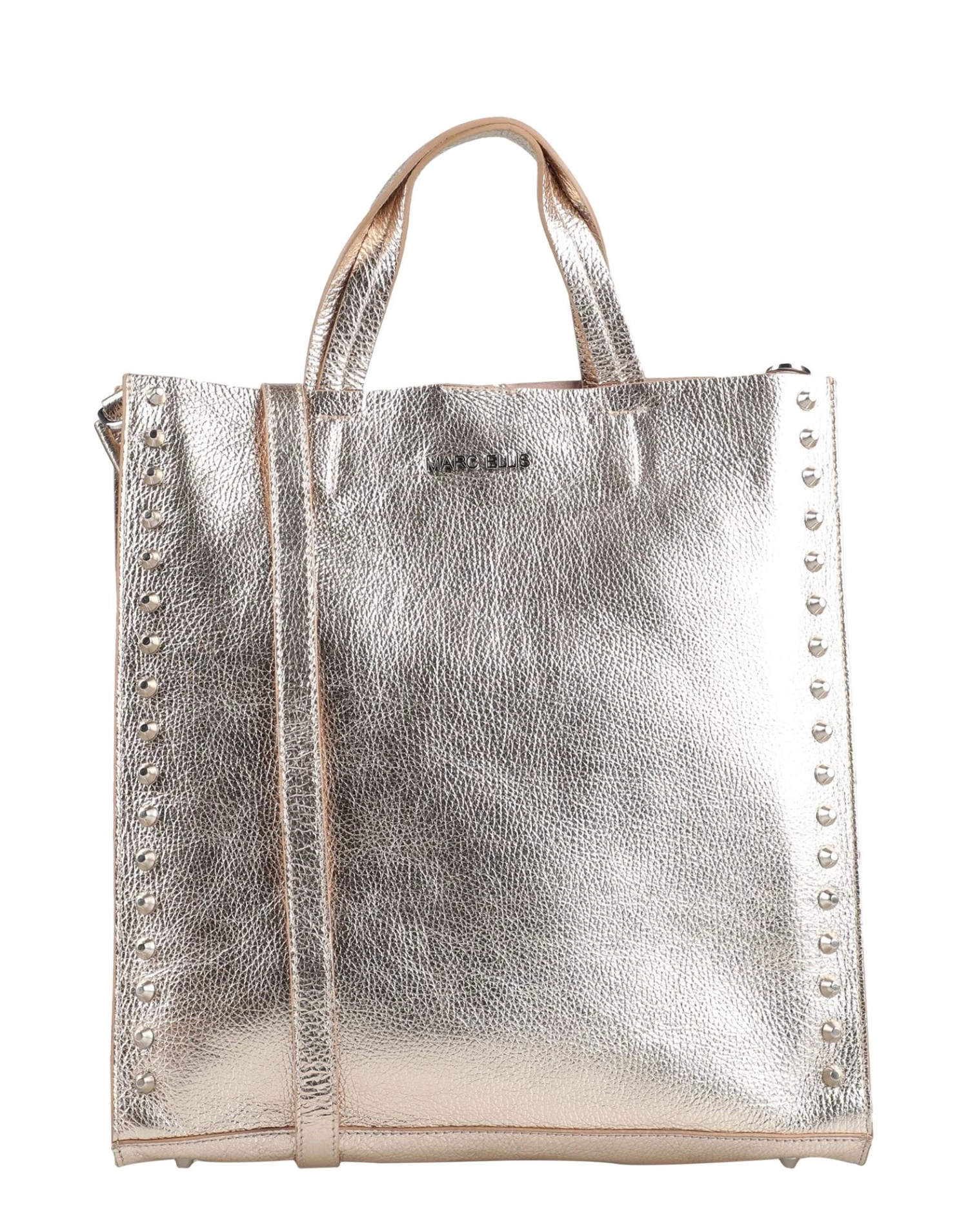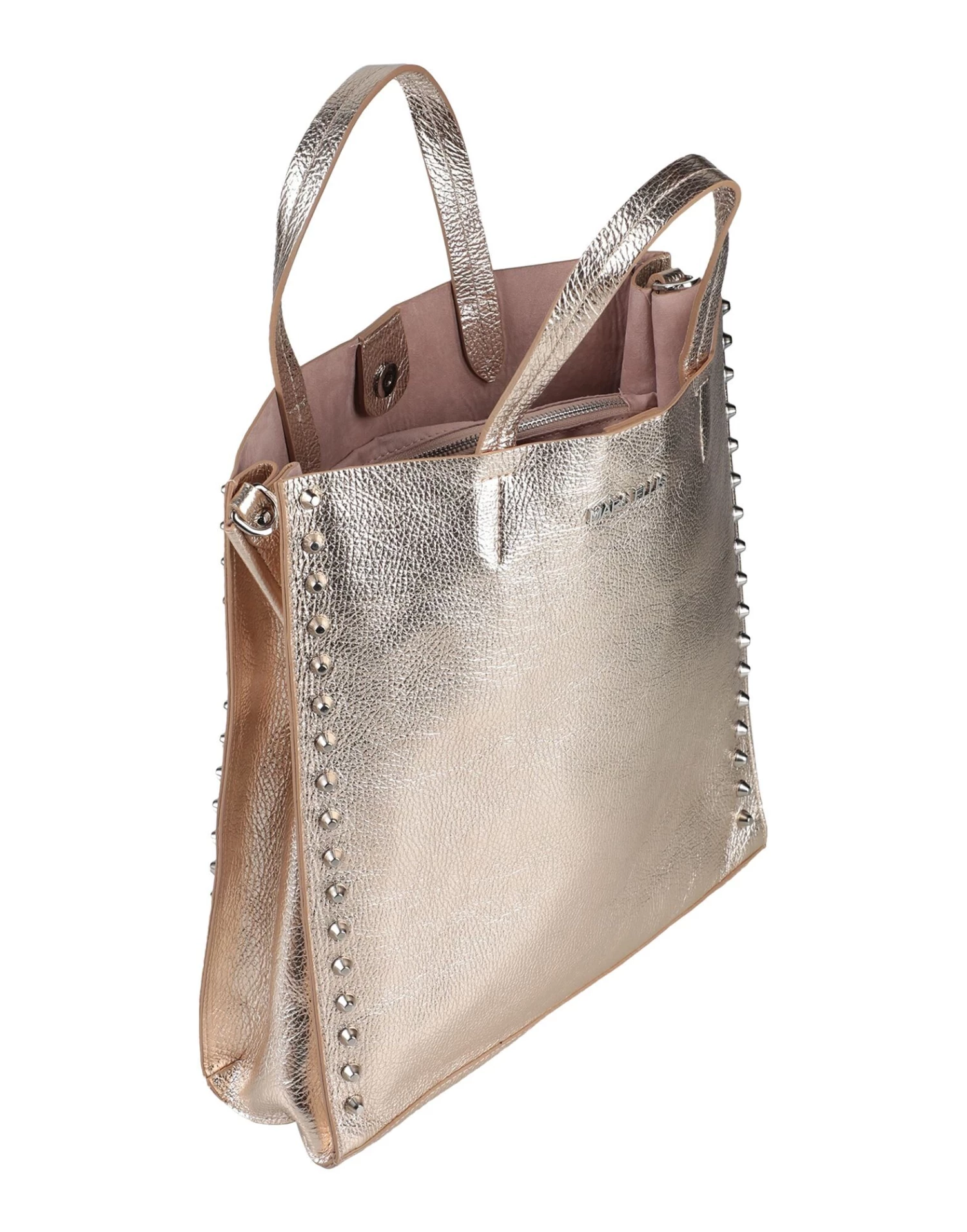 maxi, textured leather, logo, studs, solid color, magnetic fastening, double handle, removable shoulder strap, bottom with studs, contains non-textile parts of animal origin, leather, laminated effect, internal zip pocket, fully lined, leather straps