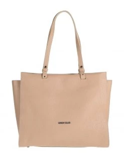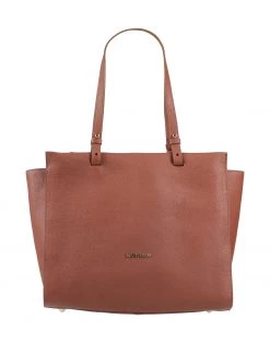 leather, textured leather, brand logo, solid color, fully lined, zipper closure, internal pockets, double handle, detachable shoulder strap, bottom with studs, daytime, large, contains non-textile parts of animal origin