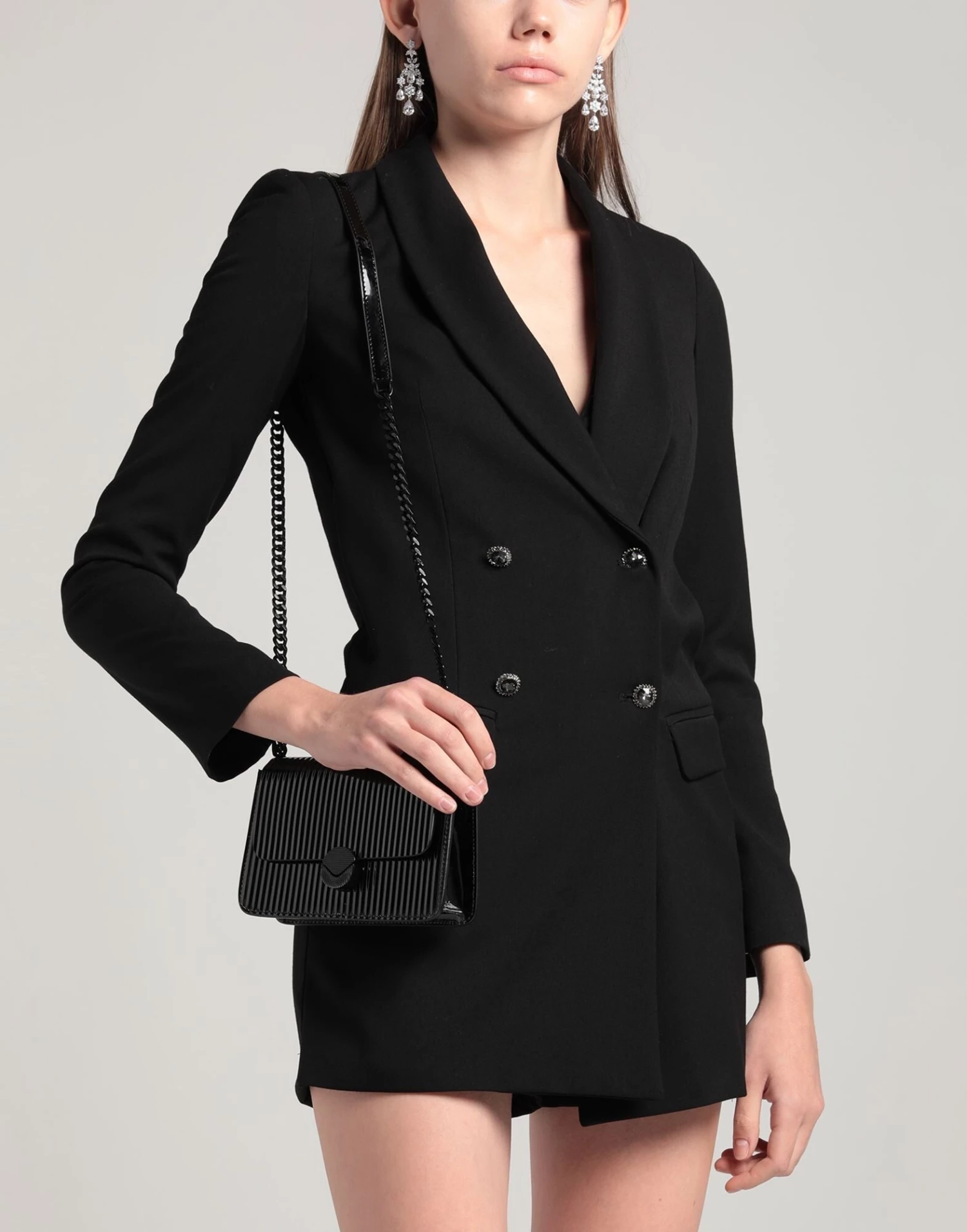 plain weave, contrasting applications, no appliqués, solid color, long sleeves, deep neckline, two pockets, front closure, button closing, stretch