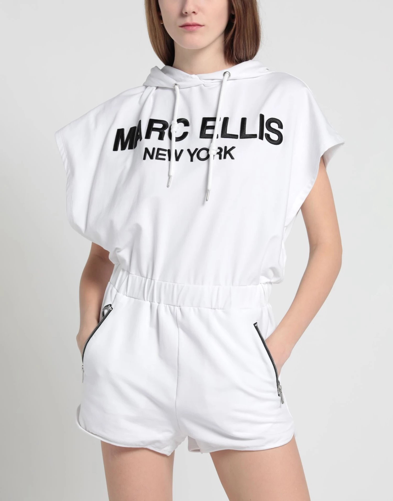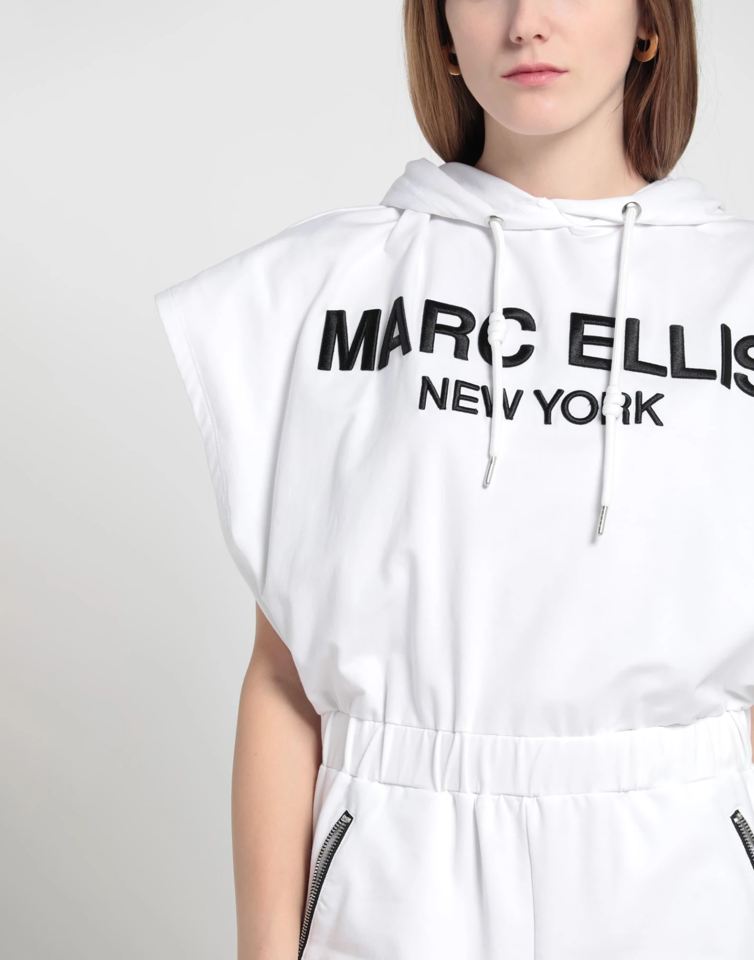jersey, embroidered detailing, brand logo, solid color, hooded collar, short sleeves, multipockets, pocket with zipper, elasticized waist, stretch
