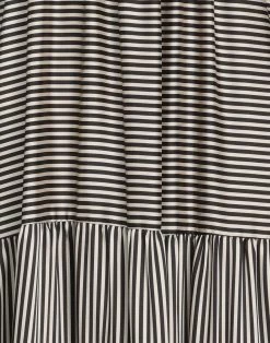 satin, sash, frills, stripes, square neckline, sleeveless, unlined, no pockets, empire style