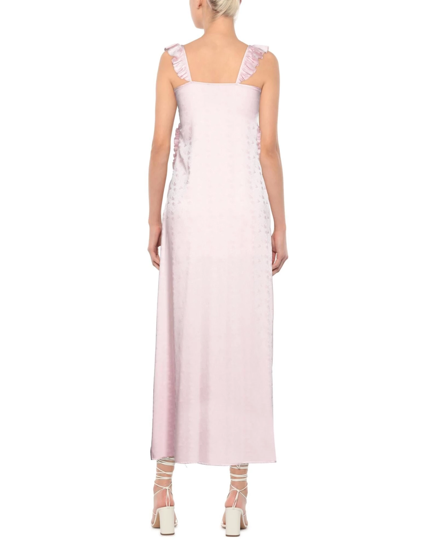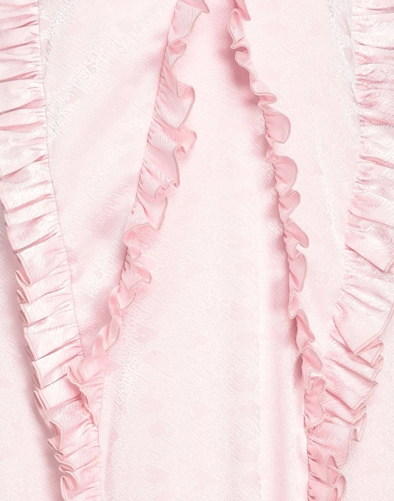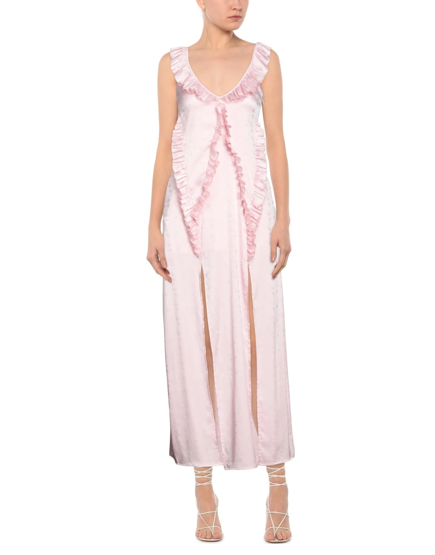 jacquard, satin, ruffles, solid color, v-neck, sleeveless, zipper closure, no pockets, partially lined interior, stretch, pencil style