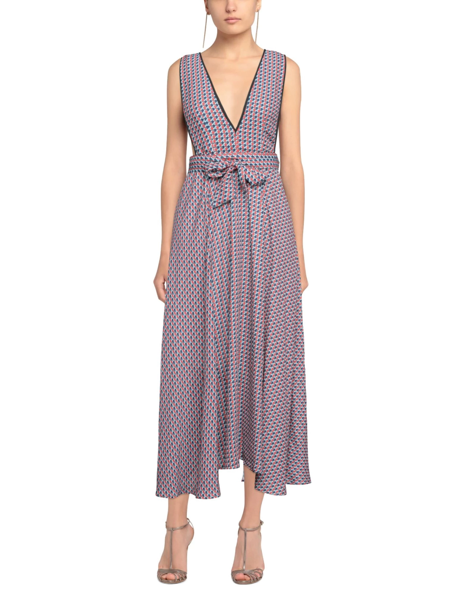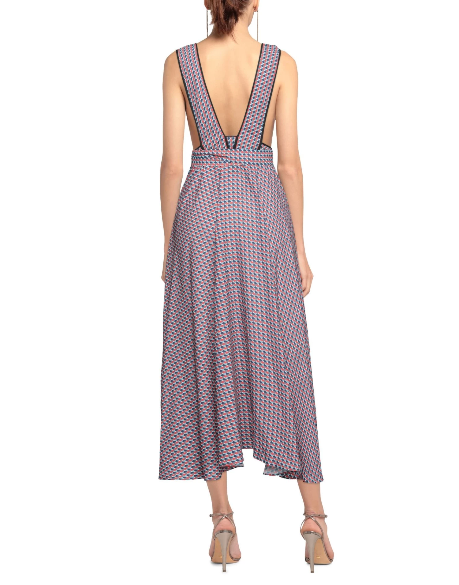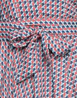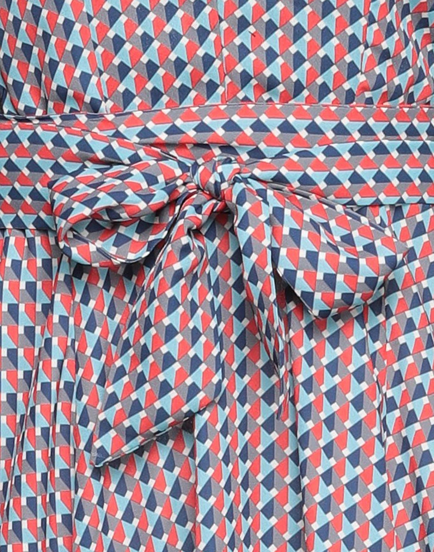 self-tie closure, zipper closure, no pockets, unlined, crepe, geometric design, sleeveless, v-neck, no appliquΓ©s