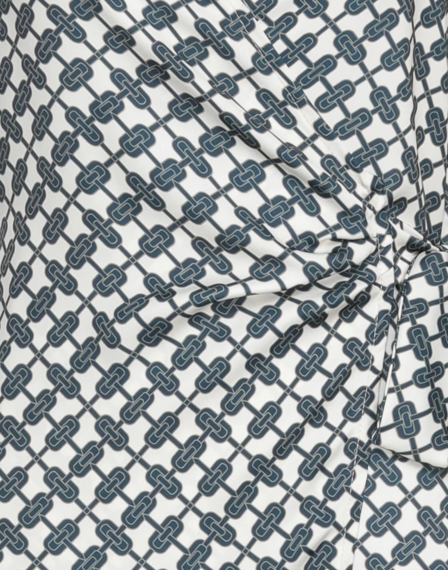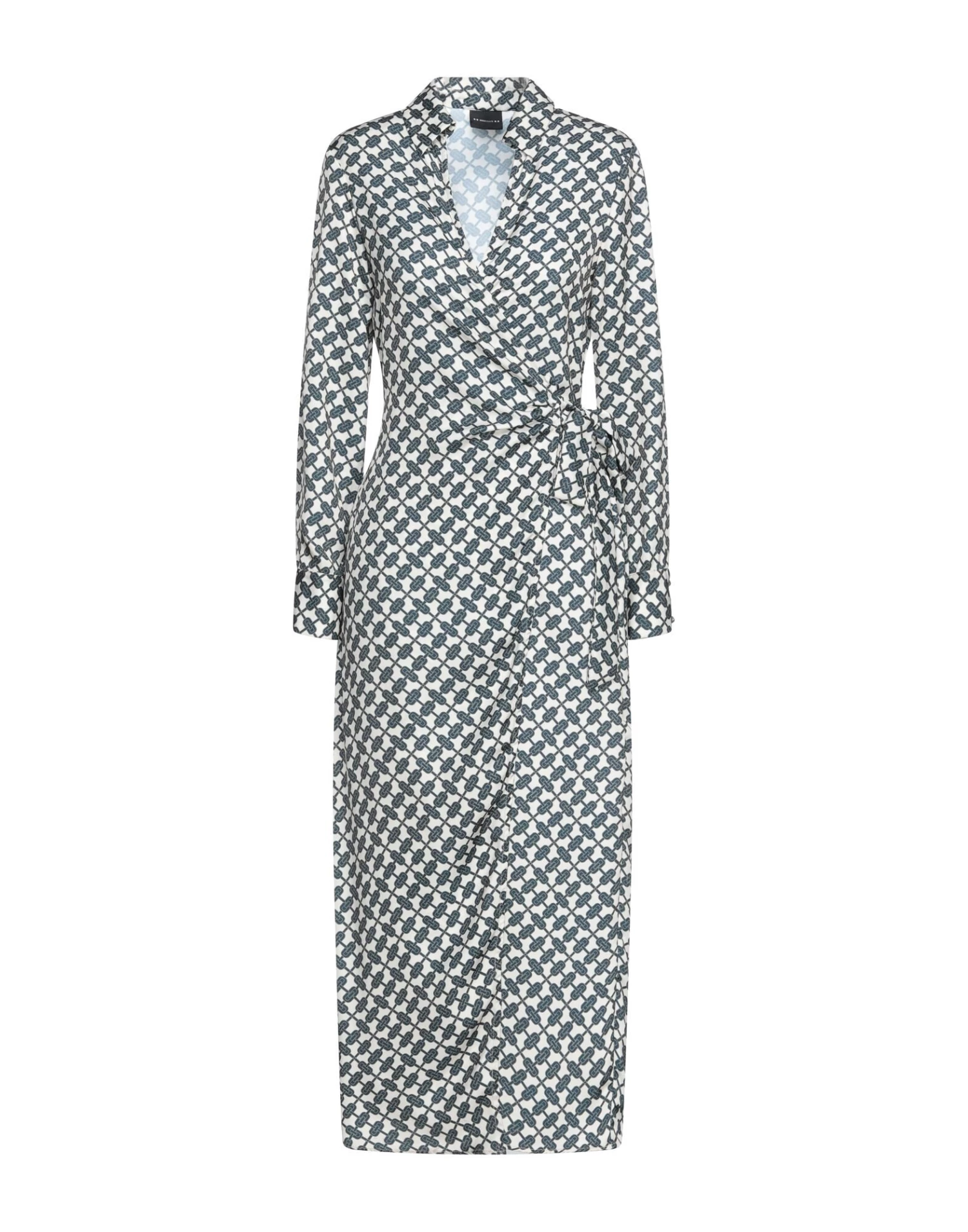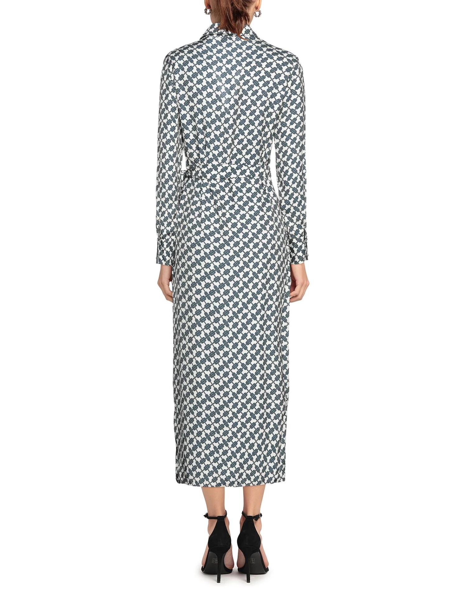 satin, no appliquΓ©s, multicolor pattern, deep neckline, long sleeves, with shoulder pad, buttoned cuffs, unlined