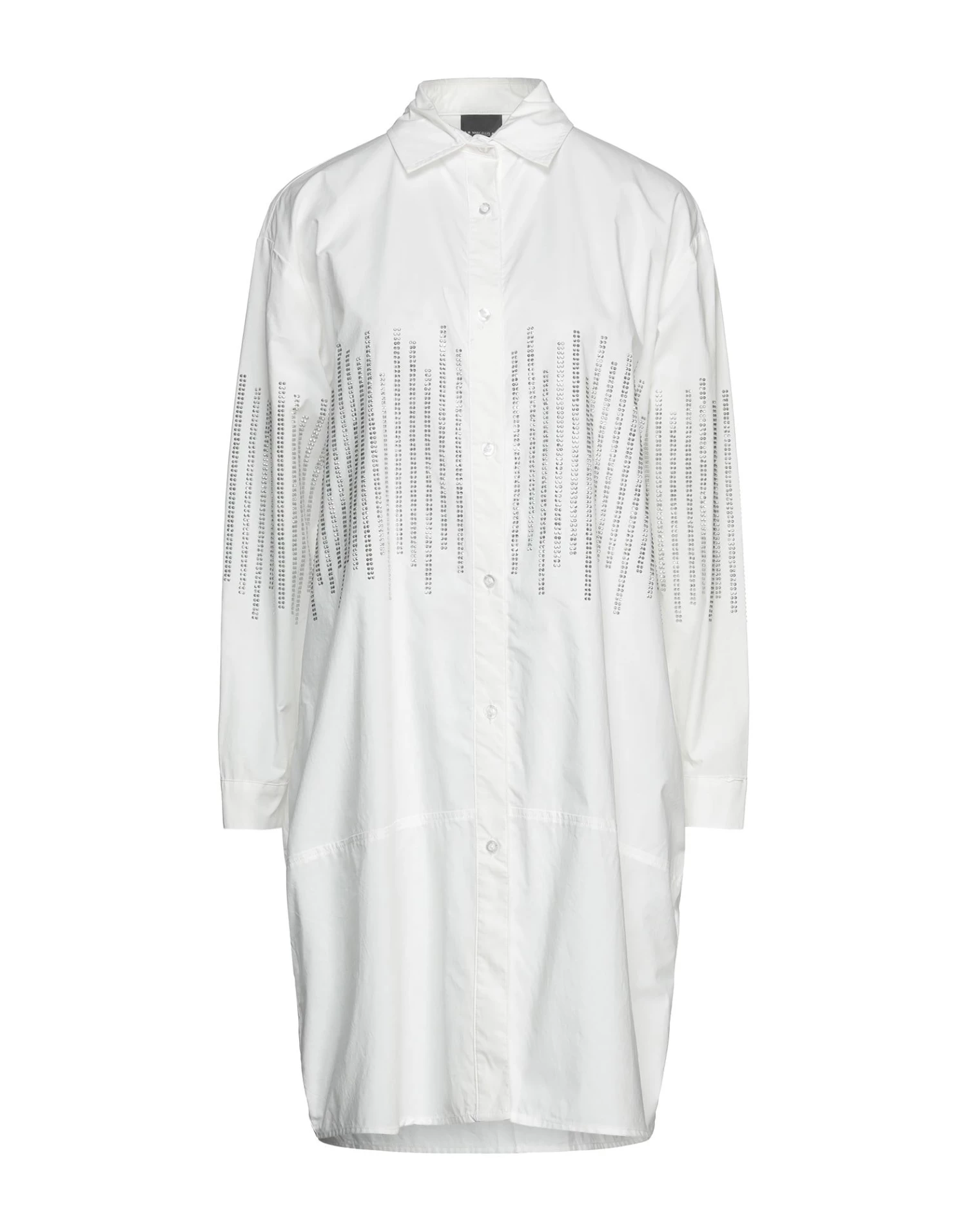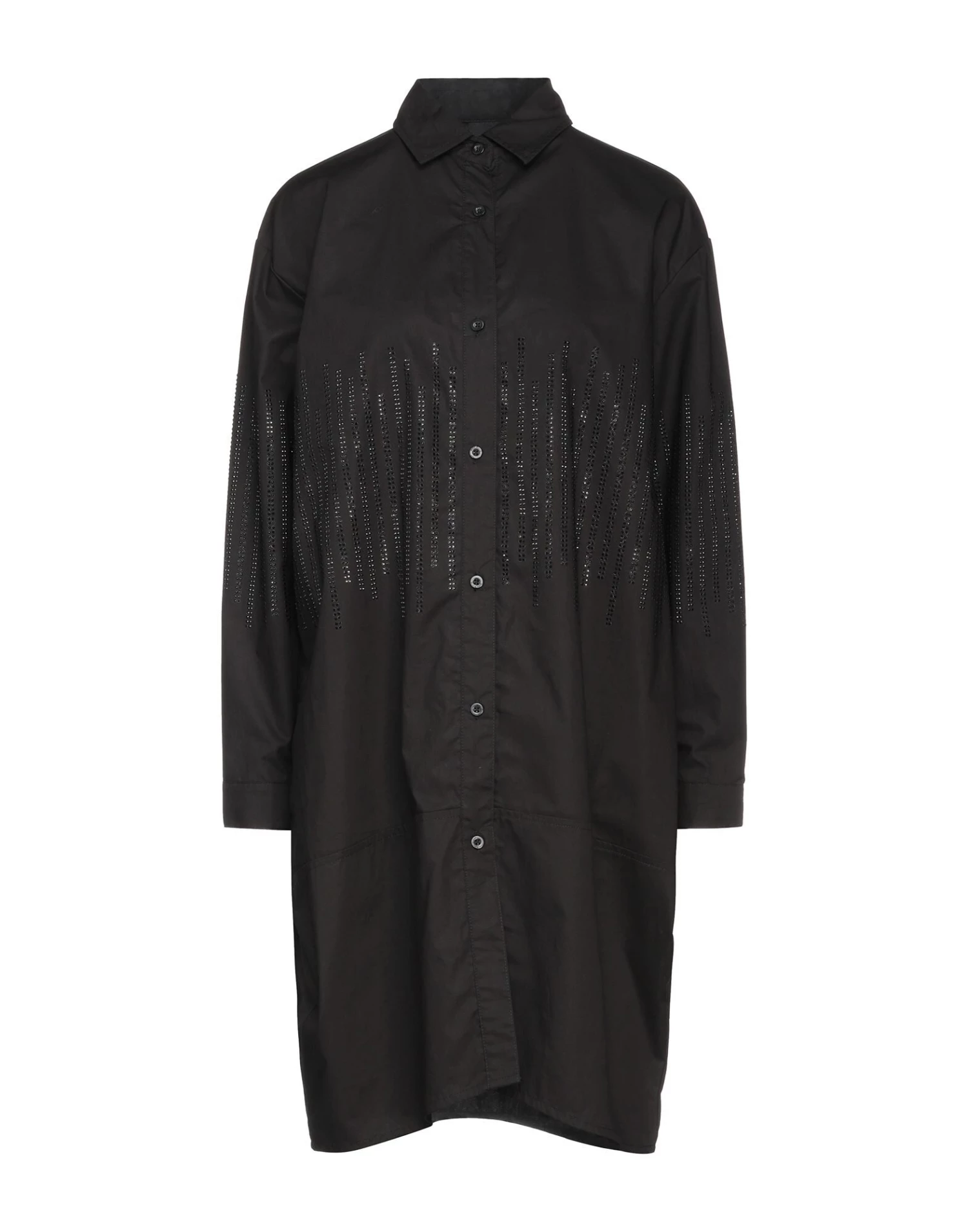 poplin, brand logo, rhinestones, solid colour with appliqués, classic neckline, long sleeves, buttoned cuffs, unlined, button closing, no pockets