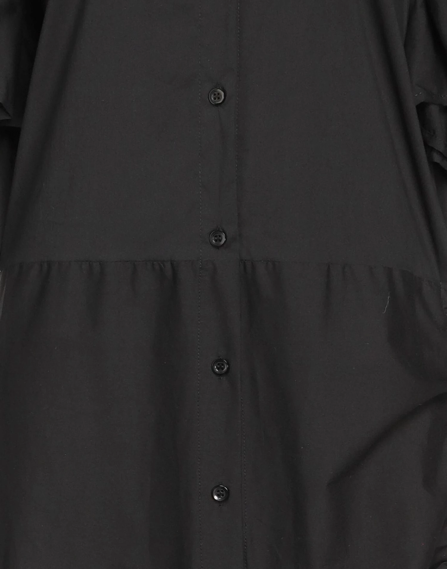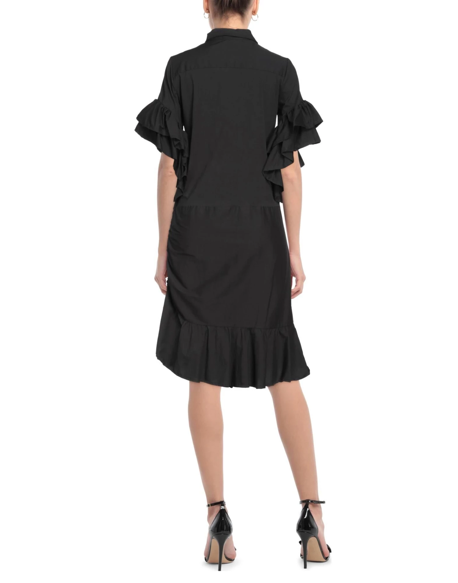 plain weave, laces, ruffles, solid color, classic neckline, short sleeves, unlined, button closing, no pockets, shirt dress