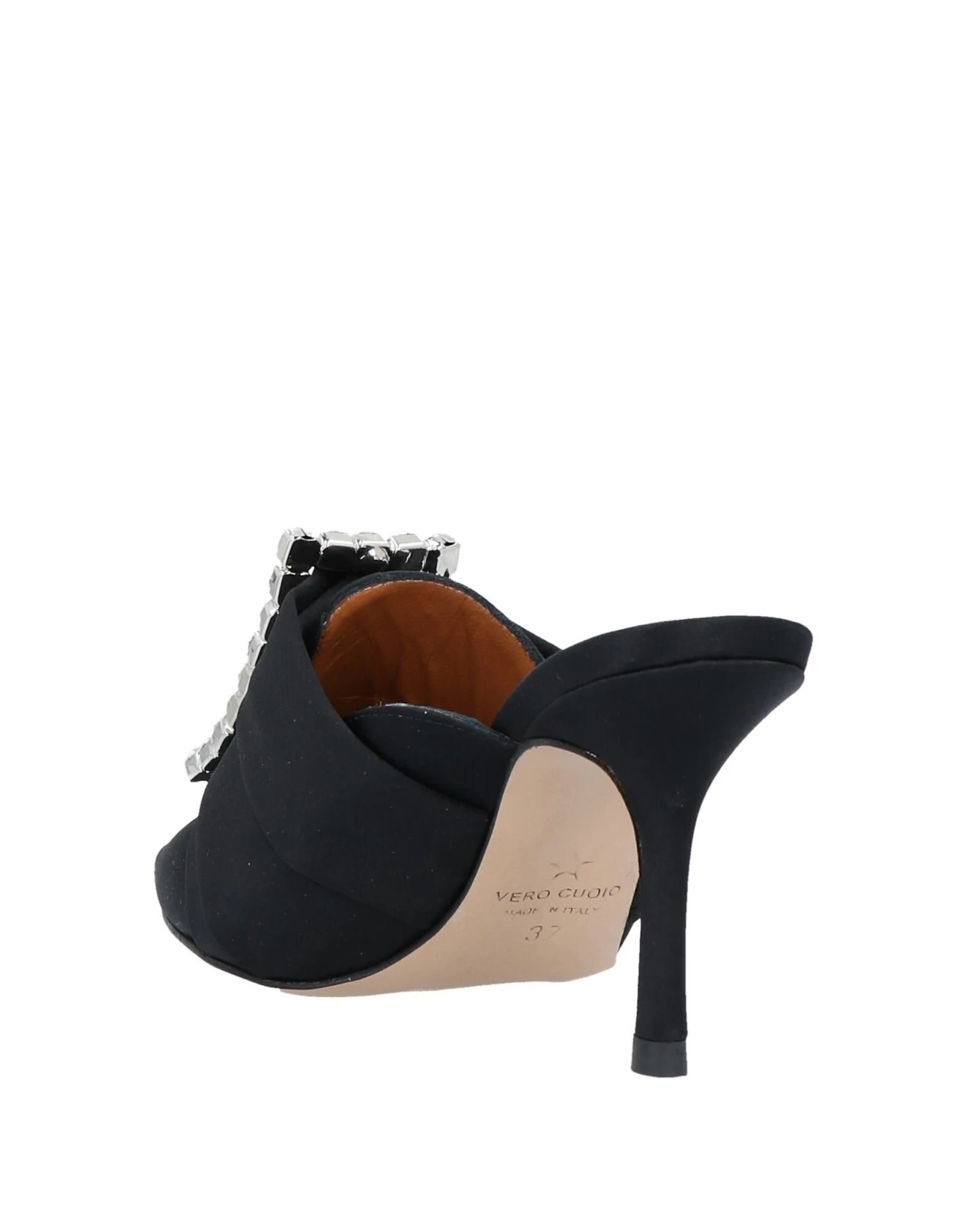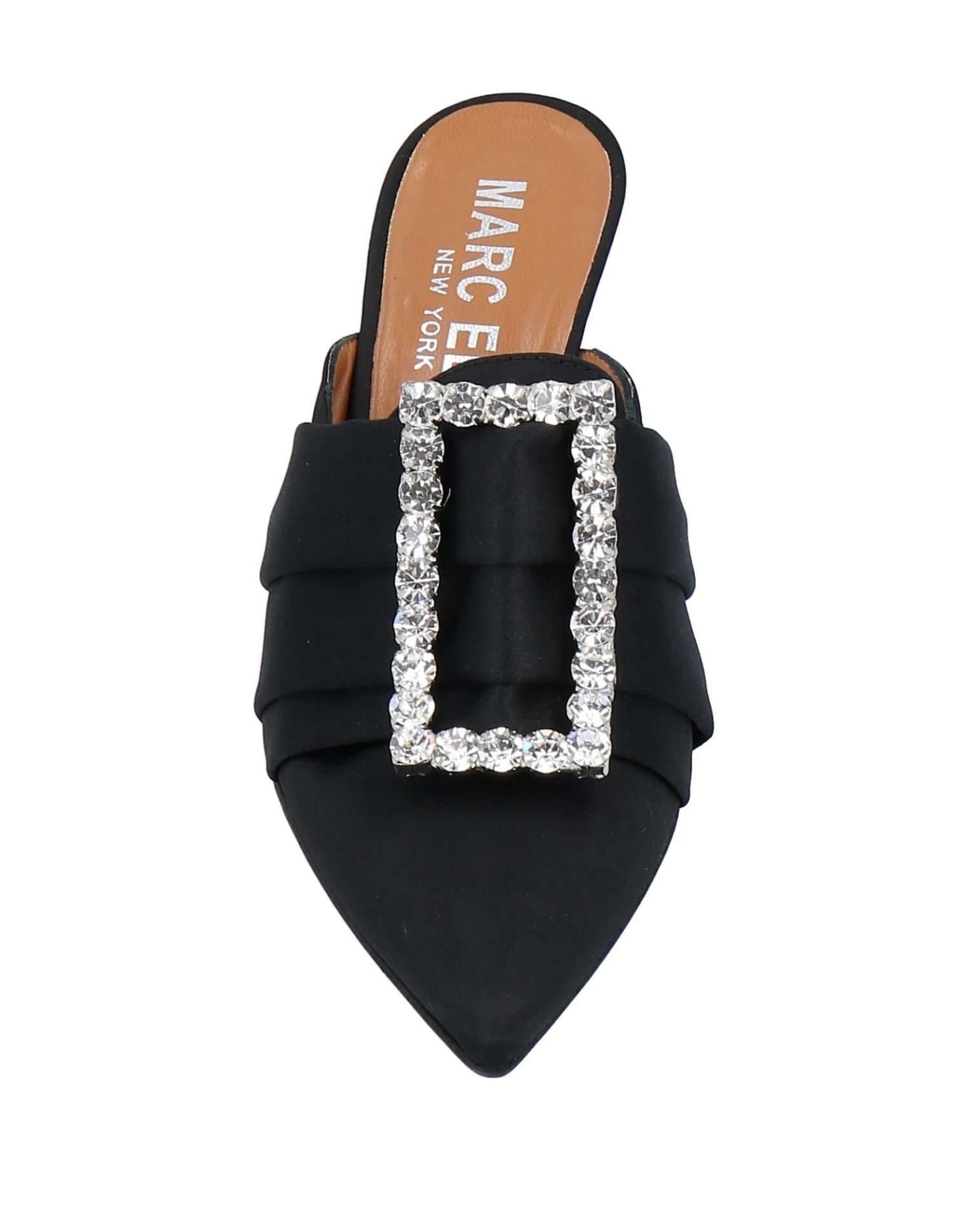 satin, rhinestones, buckle, solid color, narrow toeline, spike heel, covered heel, leather lining, leather sole, contains non-textile parts of animal origin