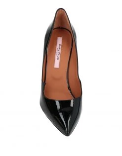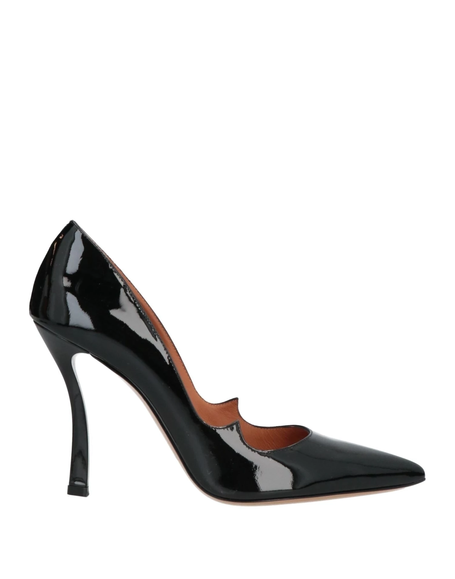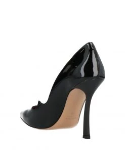 leather, varnished effect, no appliqués, solid color, leather backing, narrow toeline, spike heel, leather/rubber sole, contains non-textile parts of animal origin