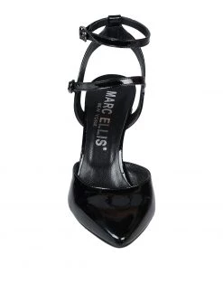 leather, varnished effect, no appliqués, solid color, buckle, narrow toeline, stiletto heel, leather lining, leather/rubber sole, contains non-textile parts of animal origin
