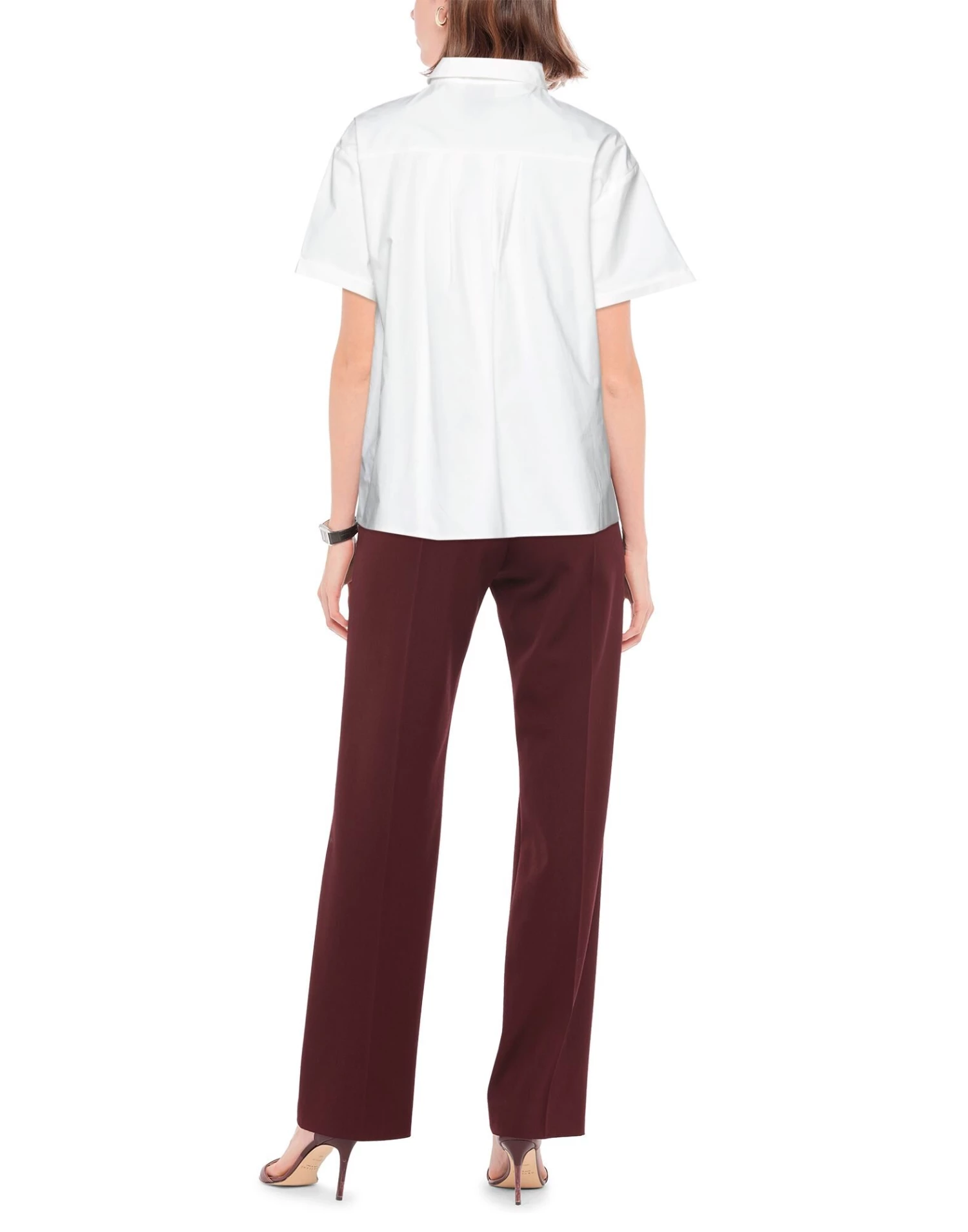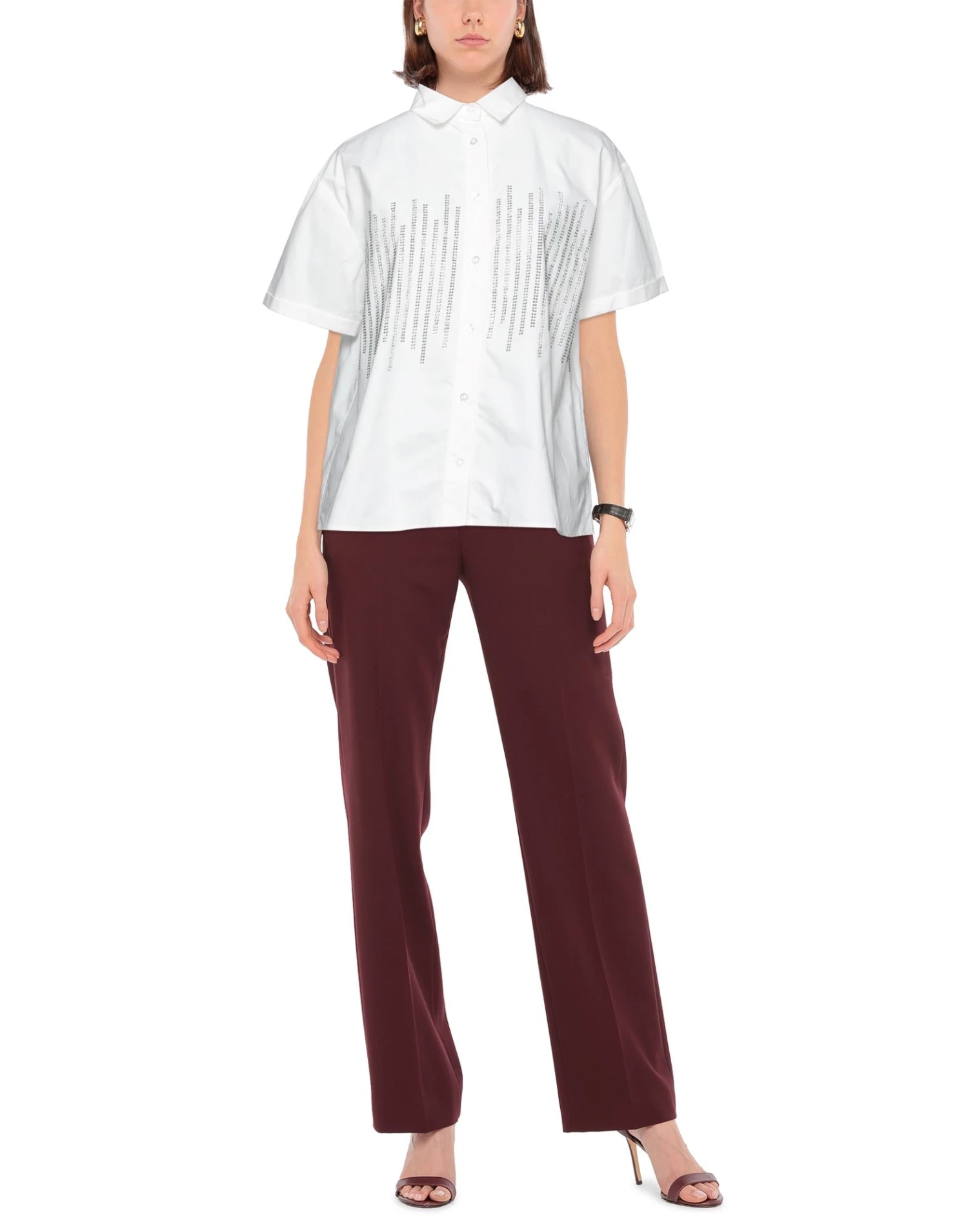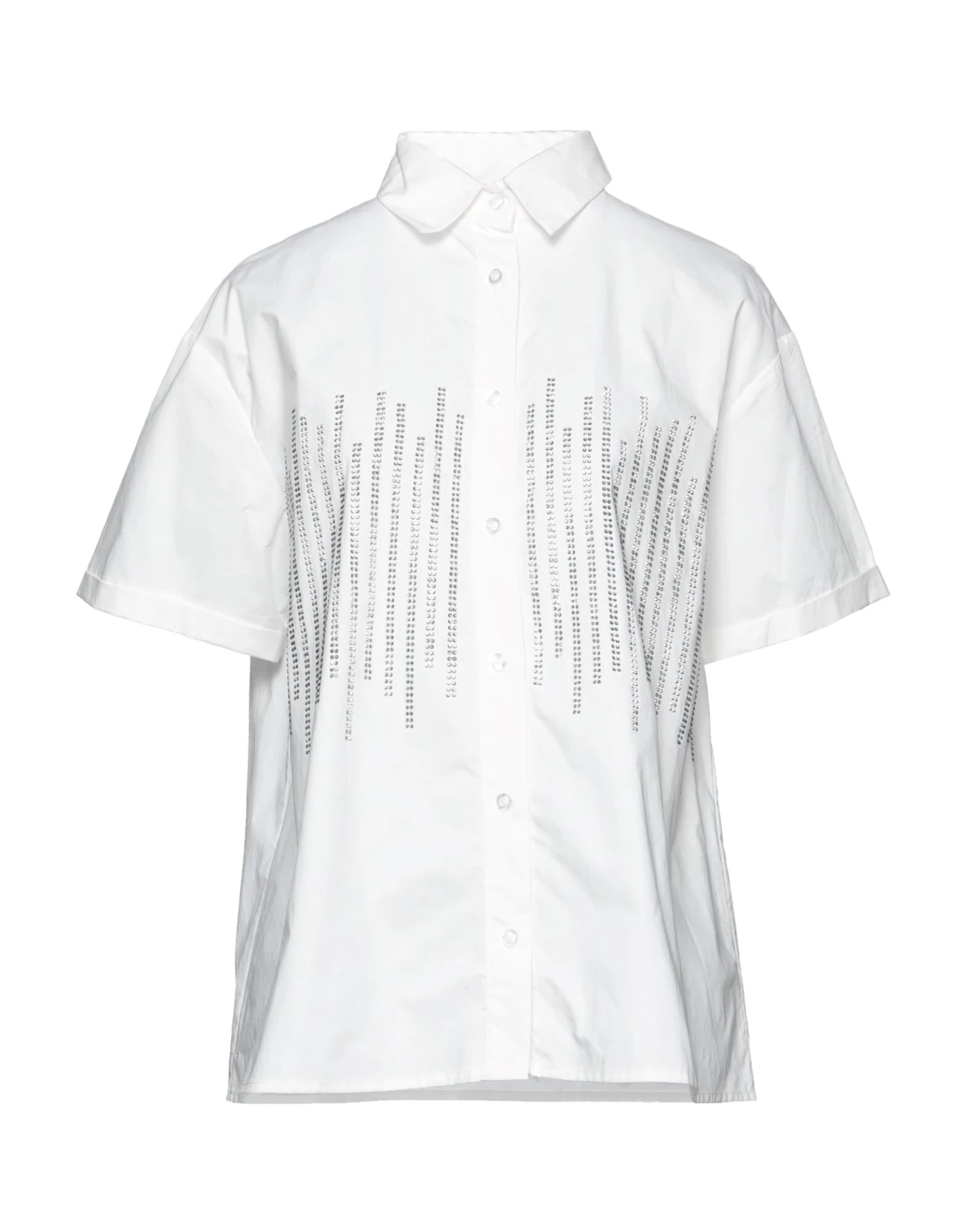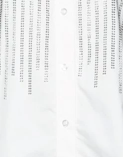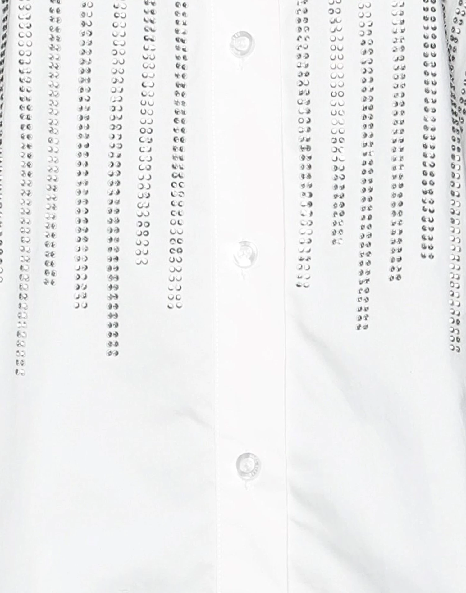 poplin, rhinestones, solid colour with appliqués, classic neckline, short sleeves, button closing