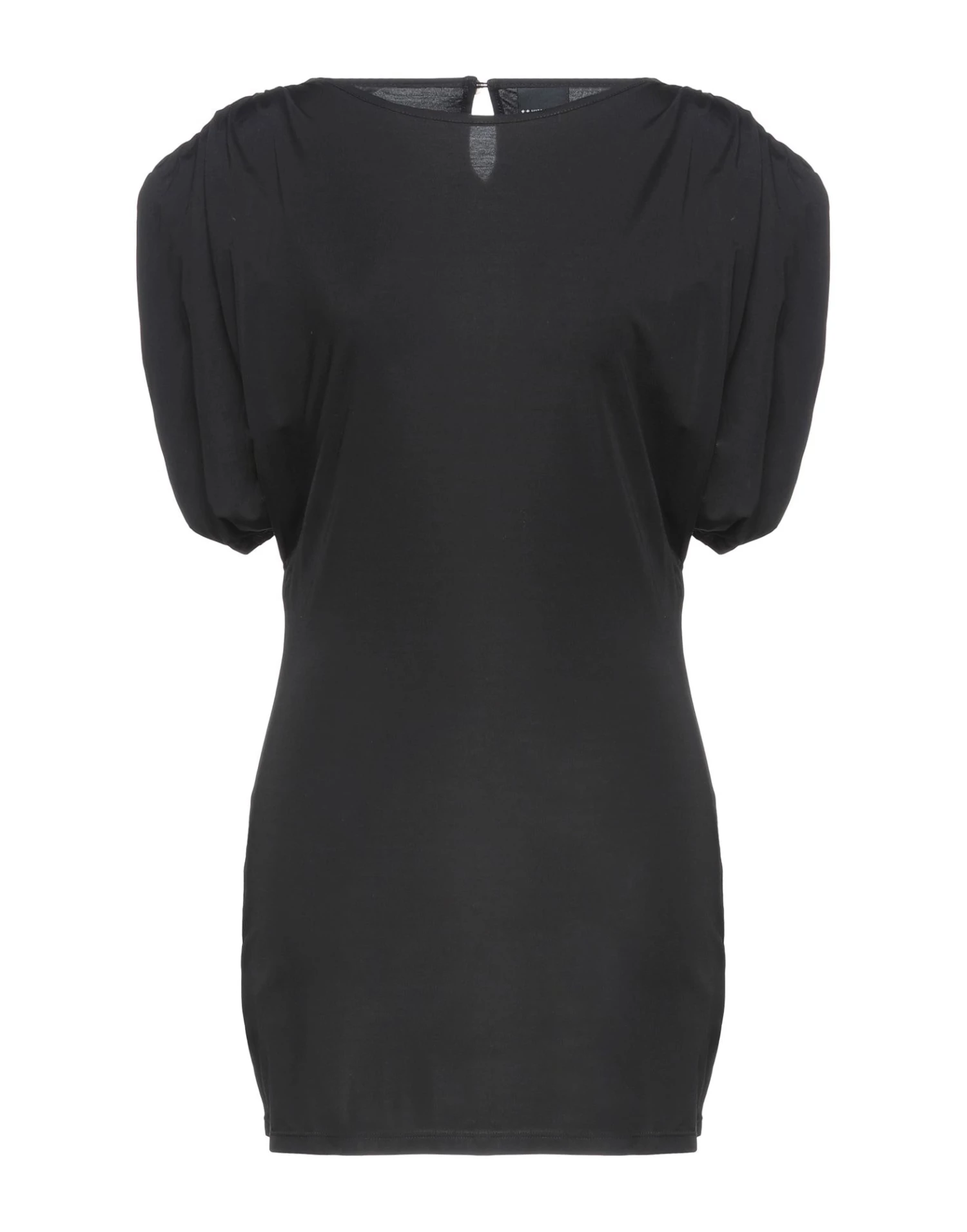 jersey, frills, solid color, wide neckline, short sleeves, with shoulder pad, unlined, 1 button, stretch