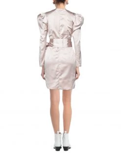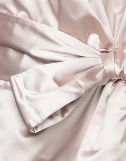 satin, belt, solid color, deep neckline, long sleeves, fully lined, zipper closure, no pockets, stretch