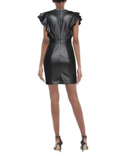 satin, coated fabric, contrasting applications, solid color, deep neckline, short sleeves, cap sleeves, zipper closure, unlined