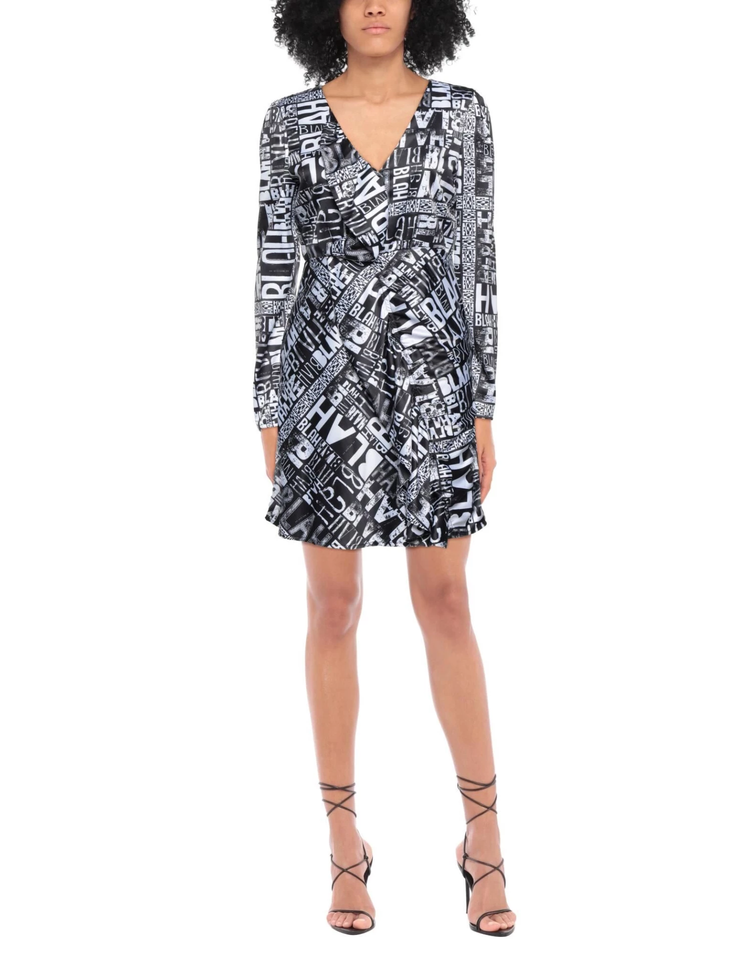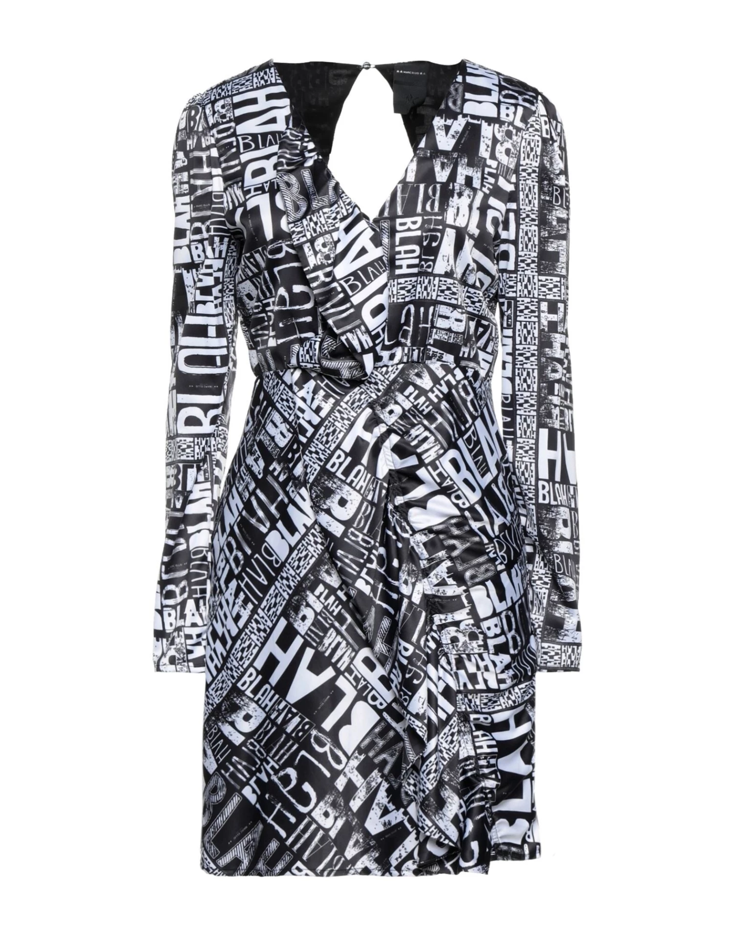 satin, ruffles, brand logo, two-tone, v-neck, long sleeves, fully lined, zipper closure, no pockets