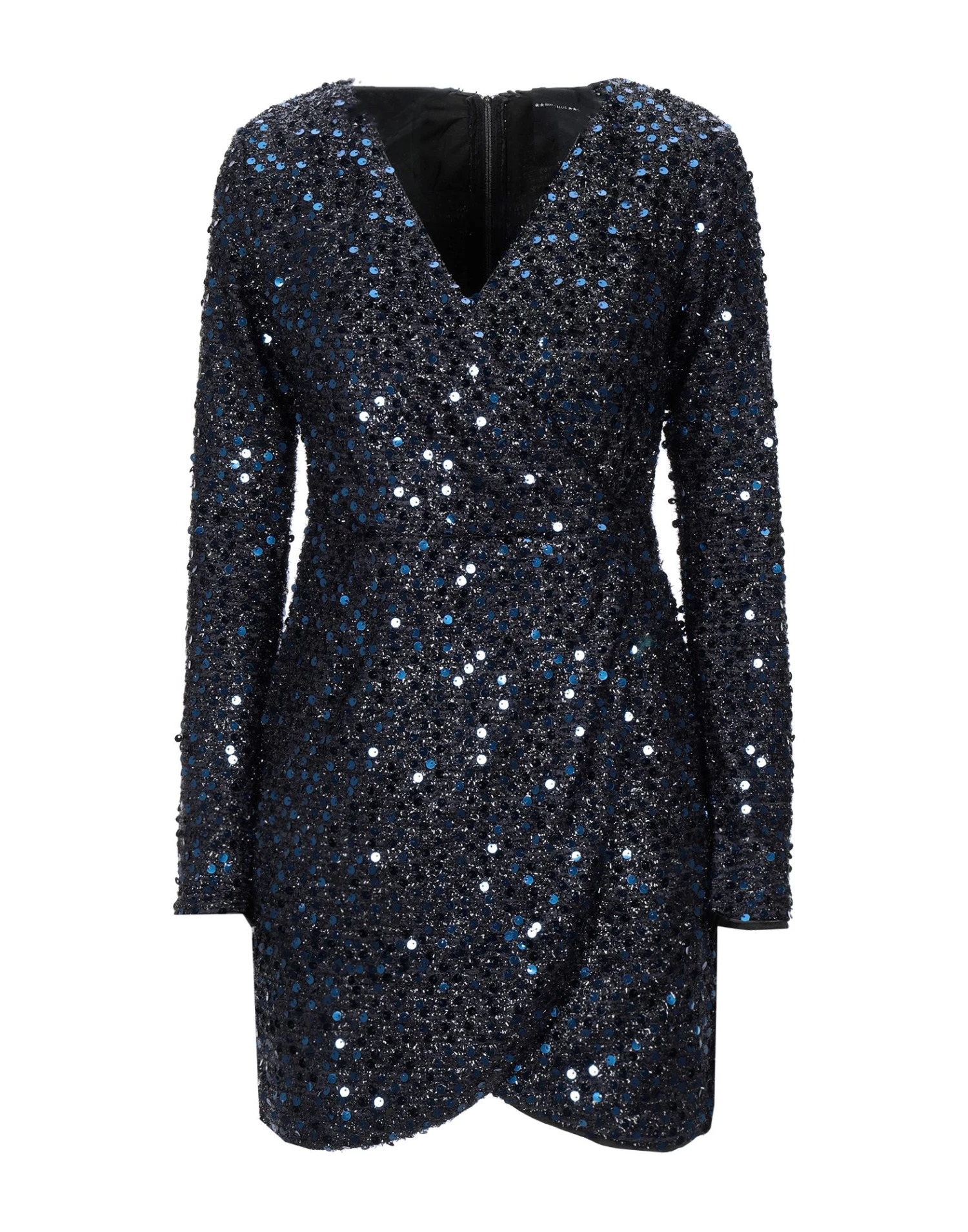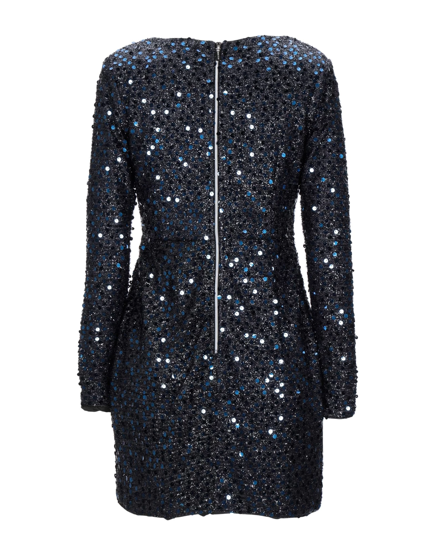 plain weave, lamรฉ, sequins, two-tone, v-neck, long sleeves, no pockets, rear closure, hook-and-bar, zip, fully lined