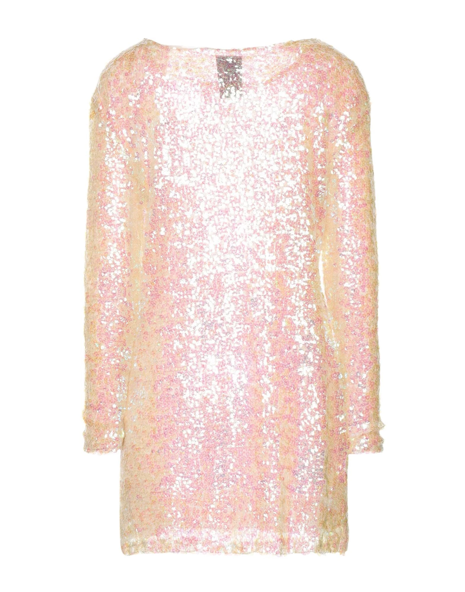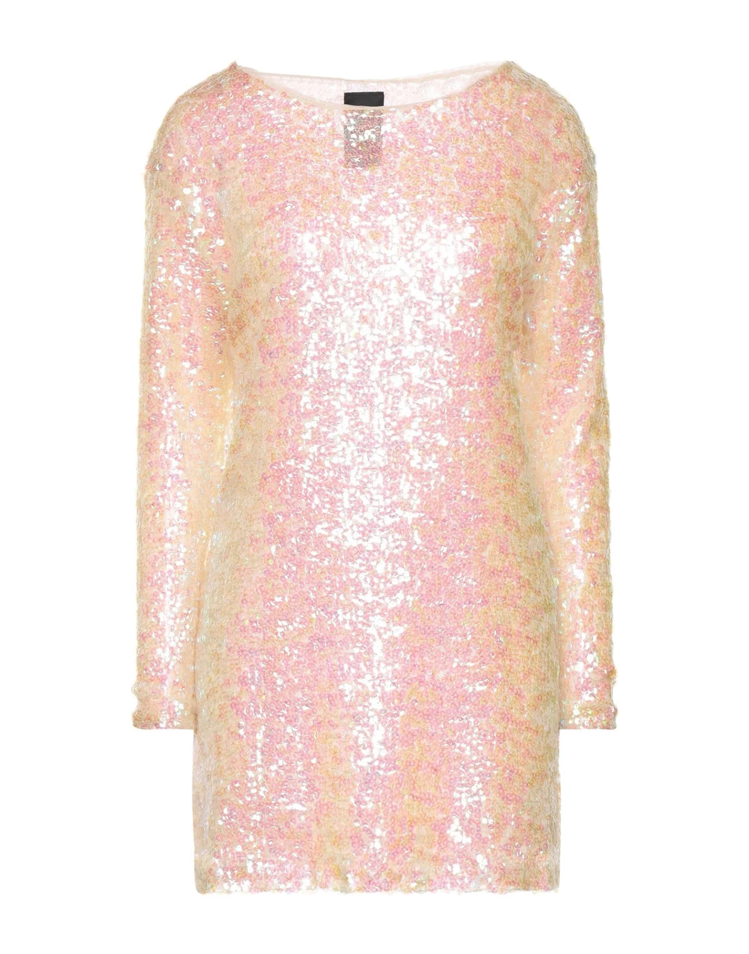 knitted, lamé, lightweight knit, sequins, multicolor pattern, wide neckline, long sleeves, fully lined
